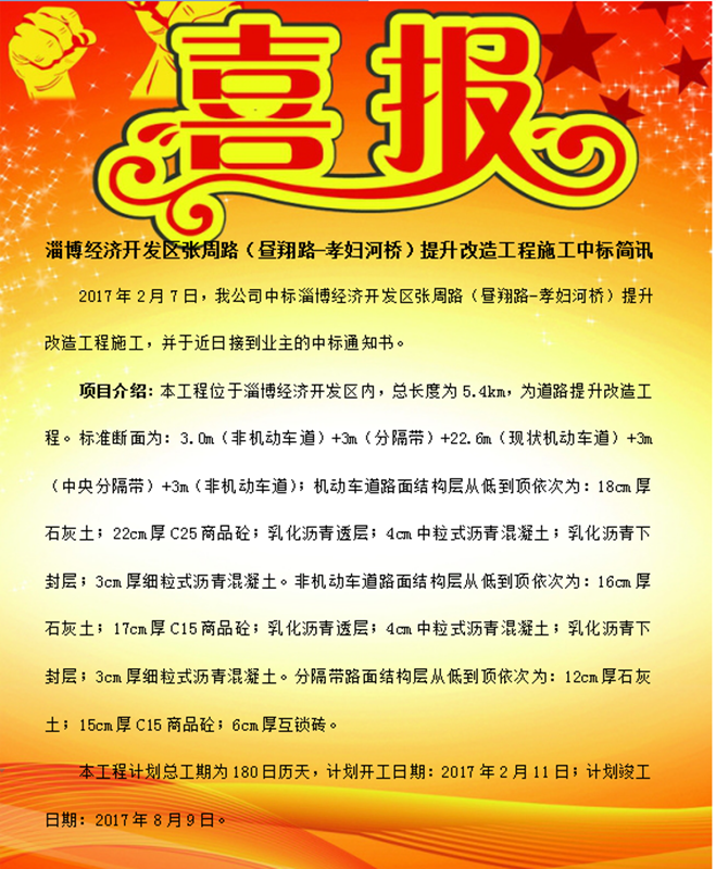 淄博經(jīng)濟(jì)開(kāi)發(fā)區(qū)張周路(晝翔路-孝婦河橋)提升改造工程施工中標(biāo)簡(jiǎn)訊