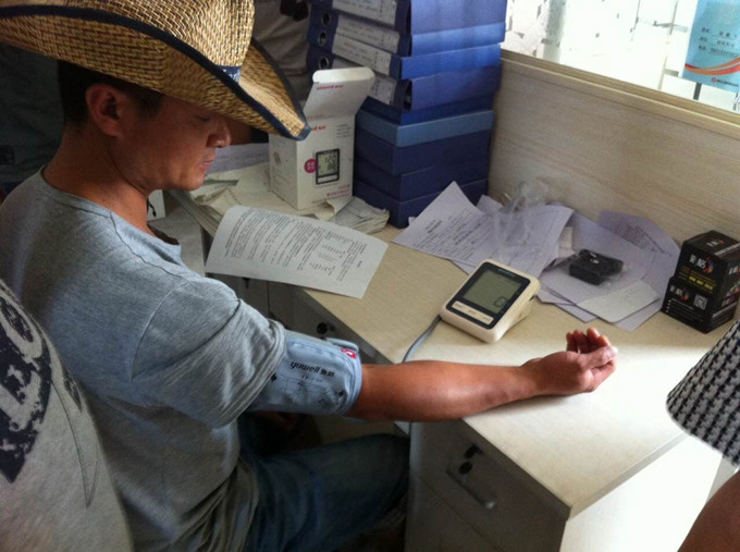 就在這樣一個炎熱的夏日,公司畢大夫與李明俊不顧酷暑一起來到工地,給大家送來了電子血壓儀,畢大夫親自給大家示范,并詳細的詢問工地職工的在職情況,唯恐漏下一個員工,為公路一線職工的身體健康添加了一道安全的防火線。