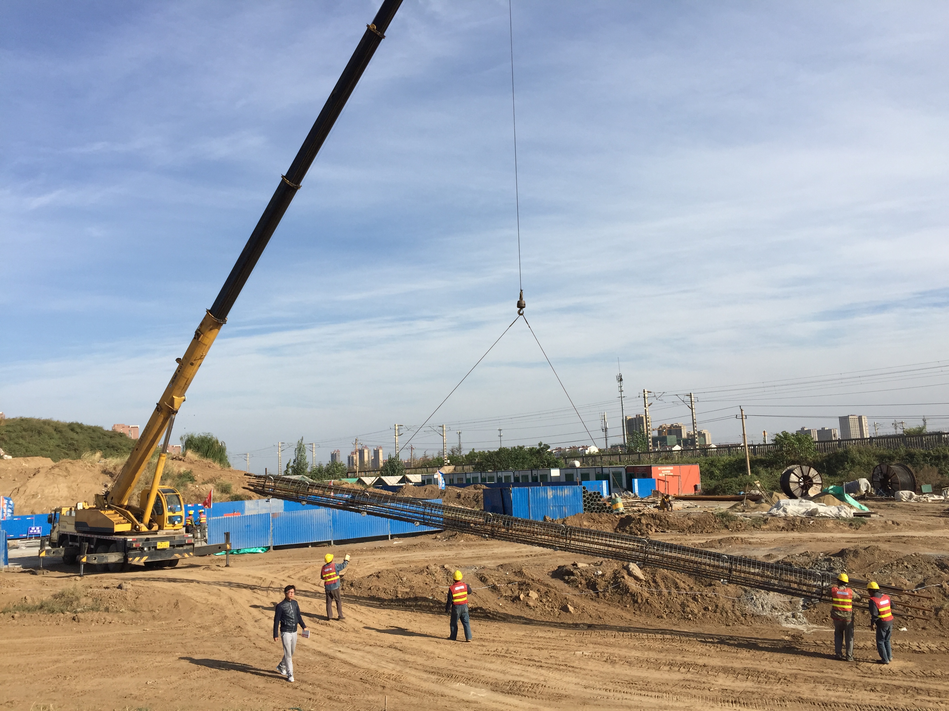 2016年10月8日,第一顆樁基鋼筋籠從鋼筋加工場倒運(yùn)至施工現(xiàn)場。