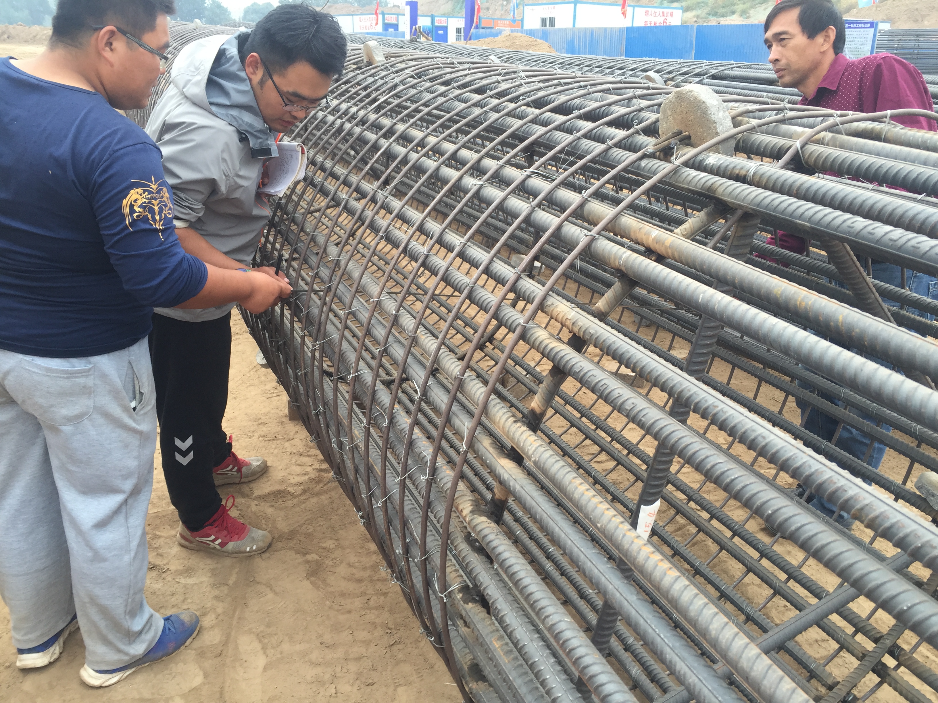 2016年10月15日,監(jiān)理對樁基鋼筋籠進(jìn)行驗(yàn)收。