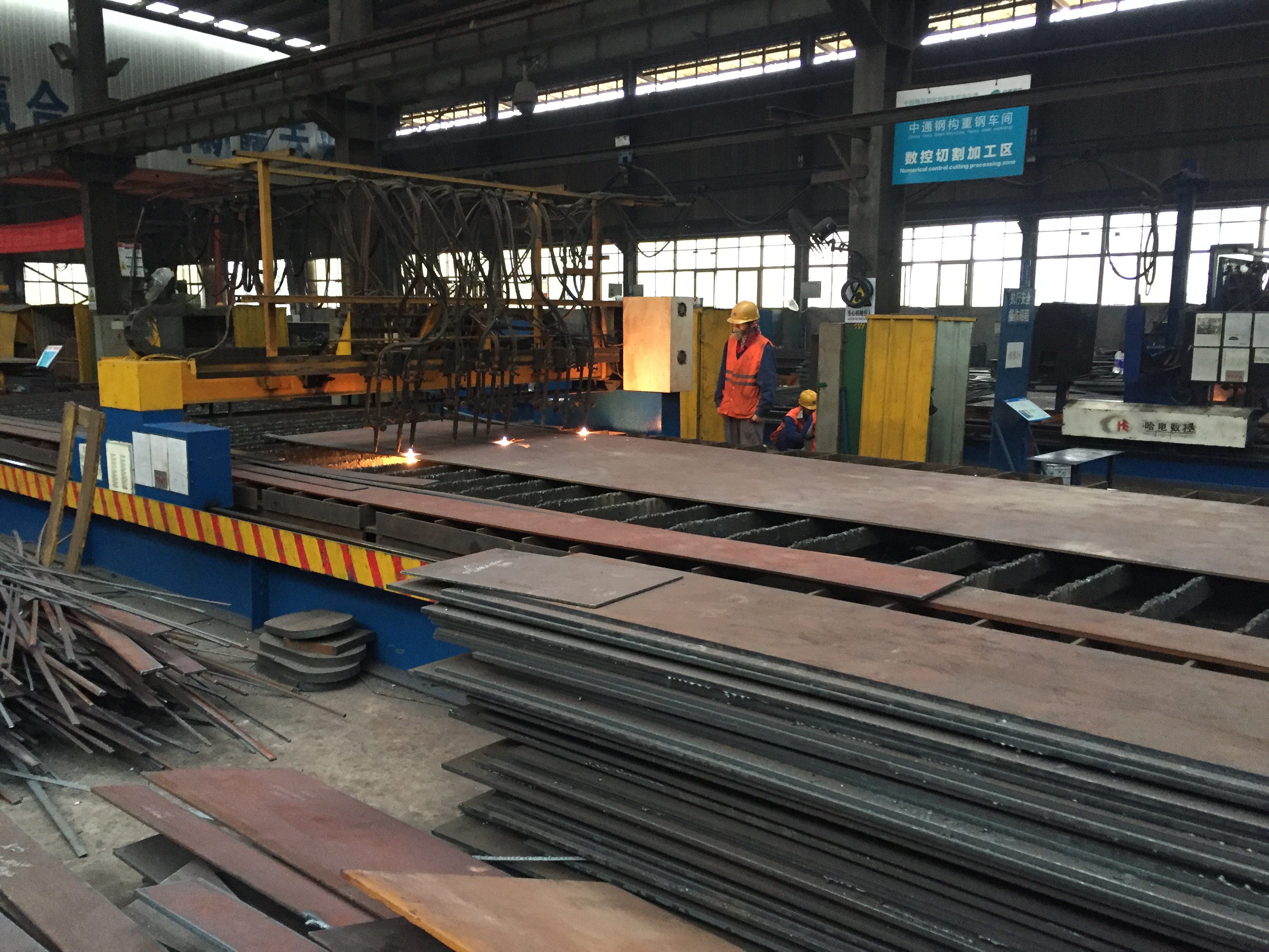 2017年2月9日,鋼主塔加工現(xiàn)場。