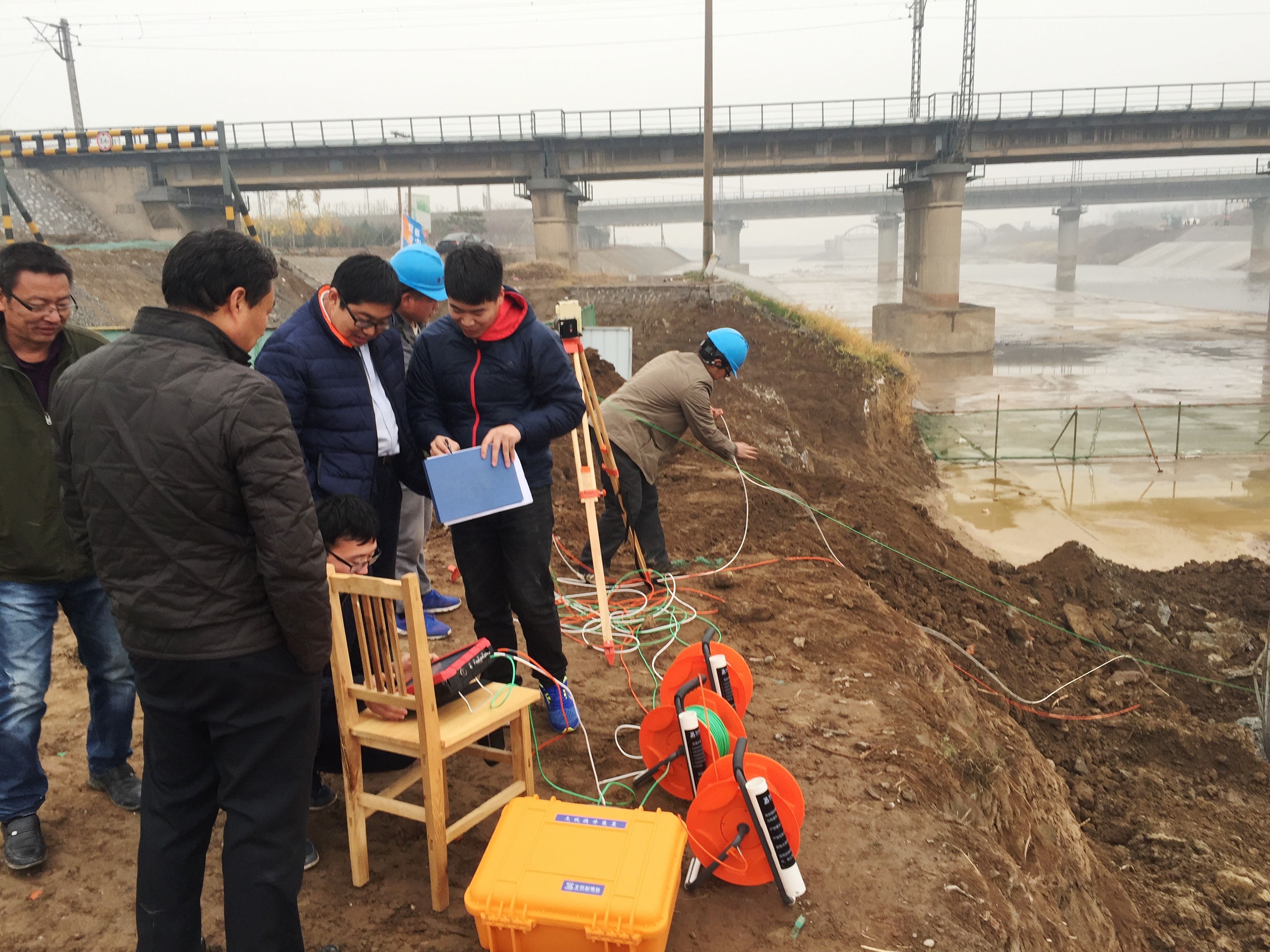 2016年11月24日,利用探孔器檢測樁基成孔質(zhì)量。
