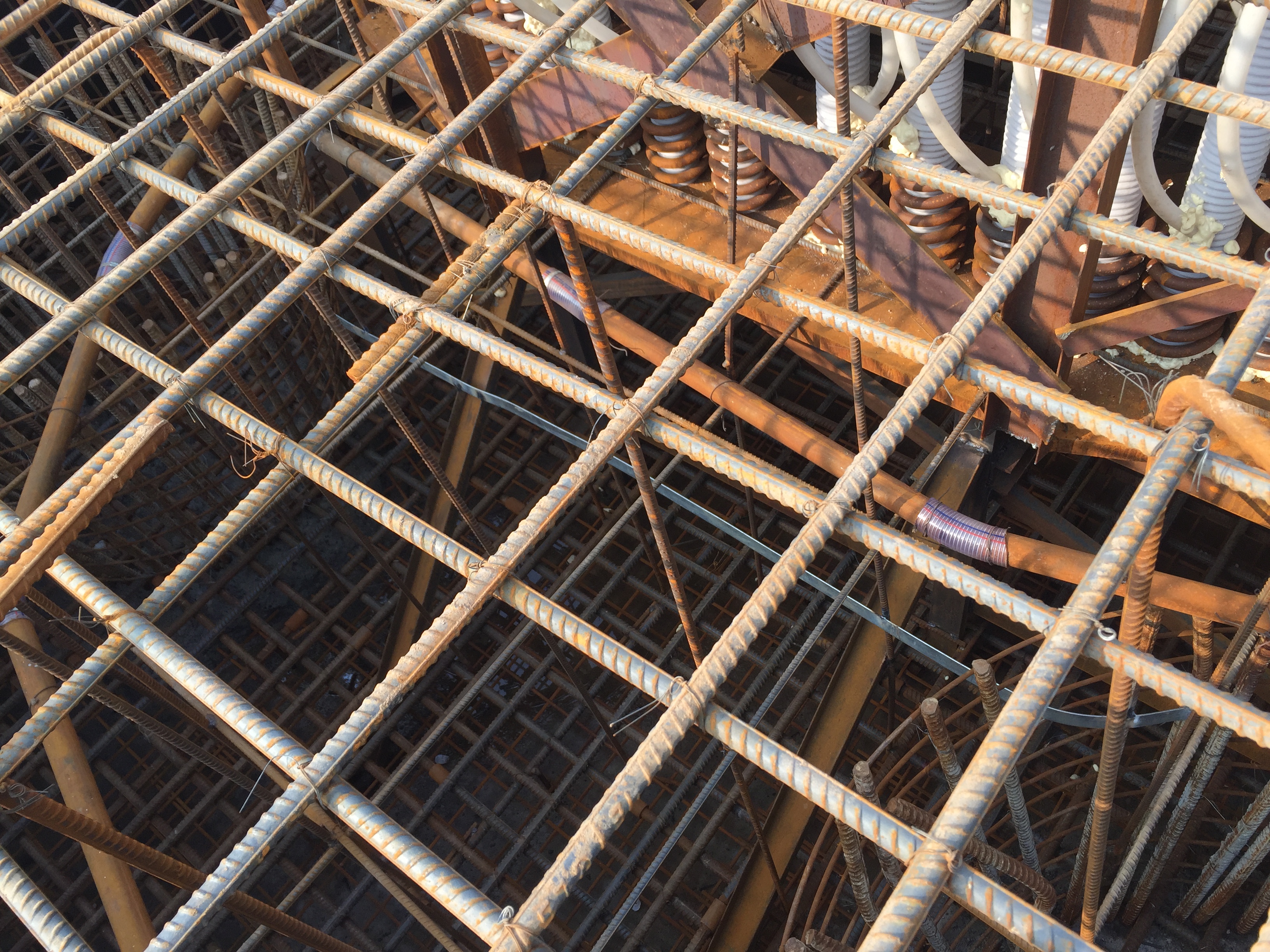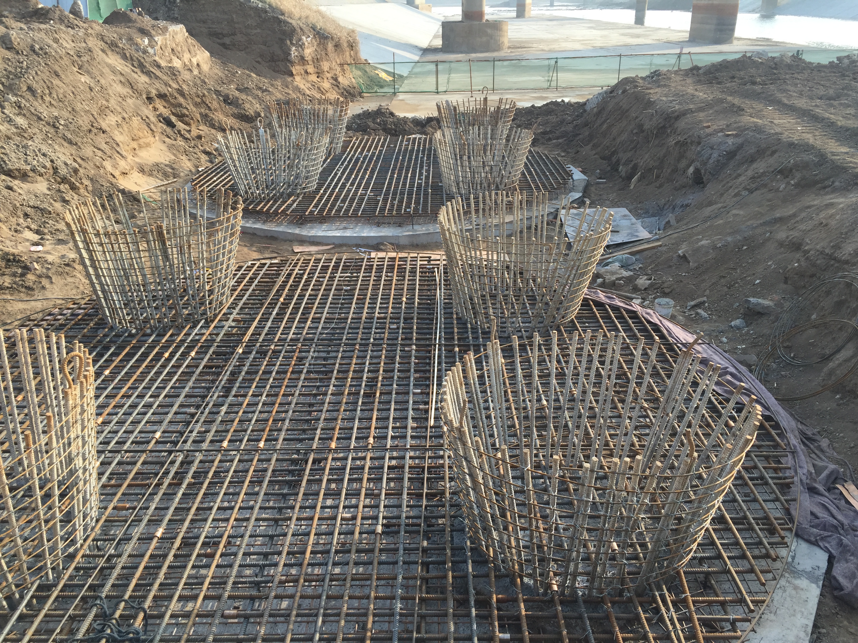 2016年11月30日,圓承臺綁扎鋼筋后猶如一朵朵盛開的鮮花。