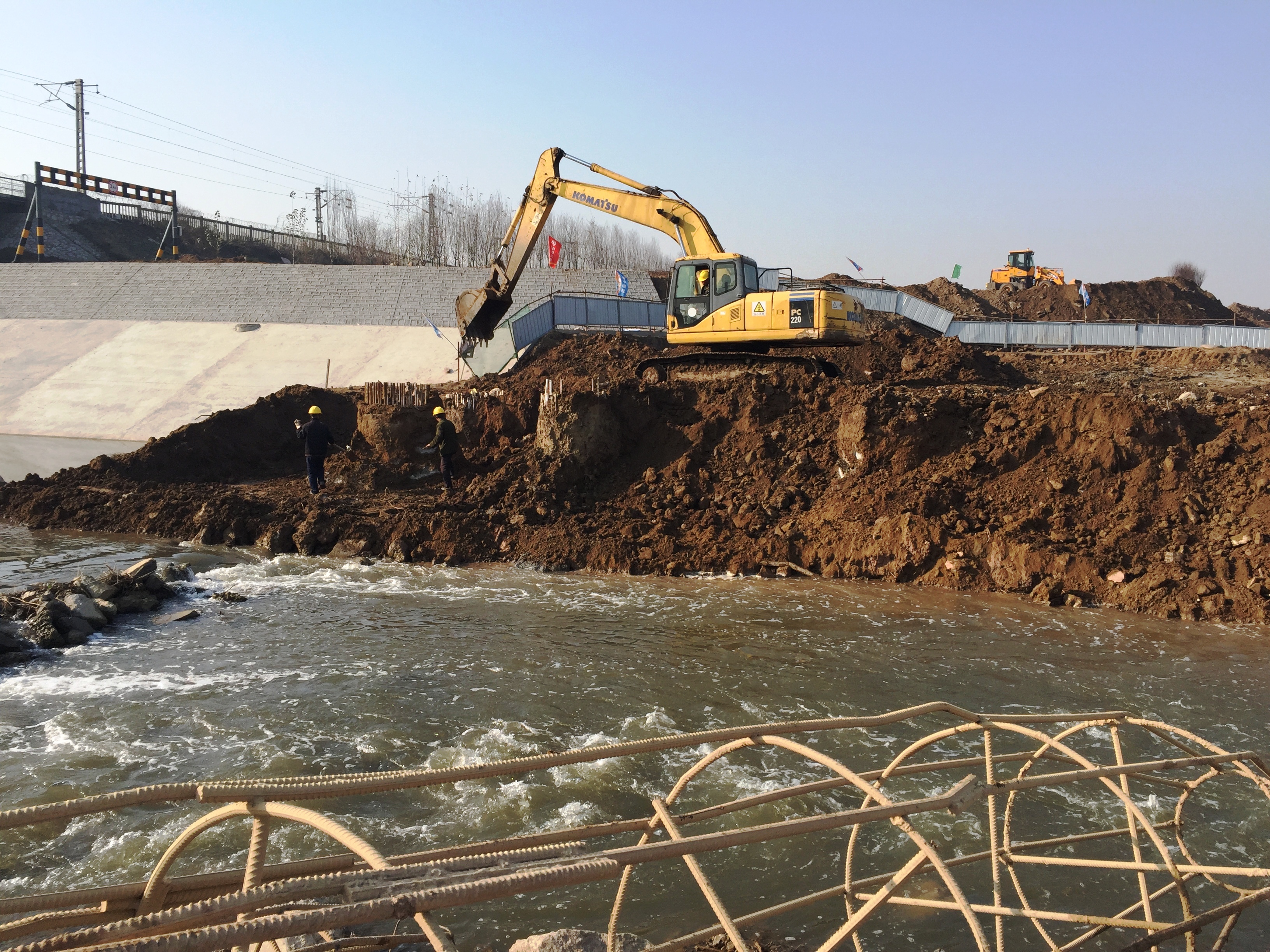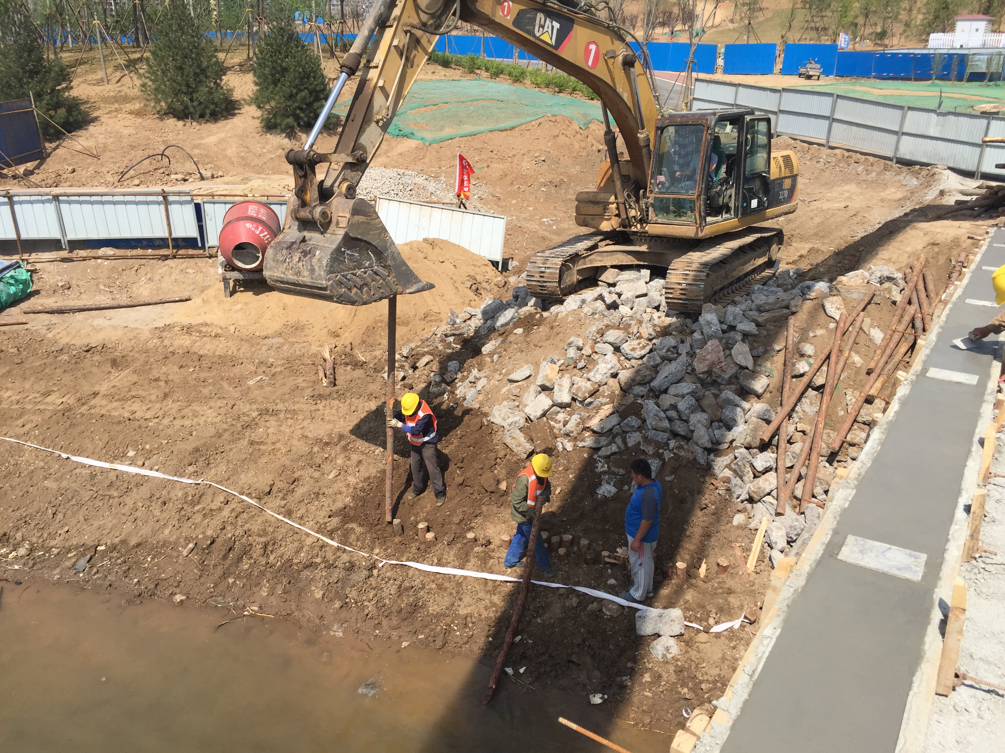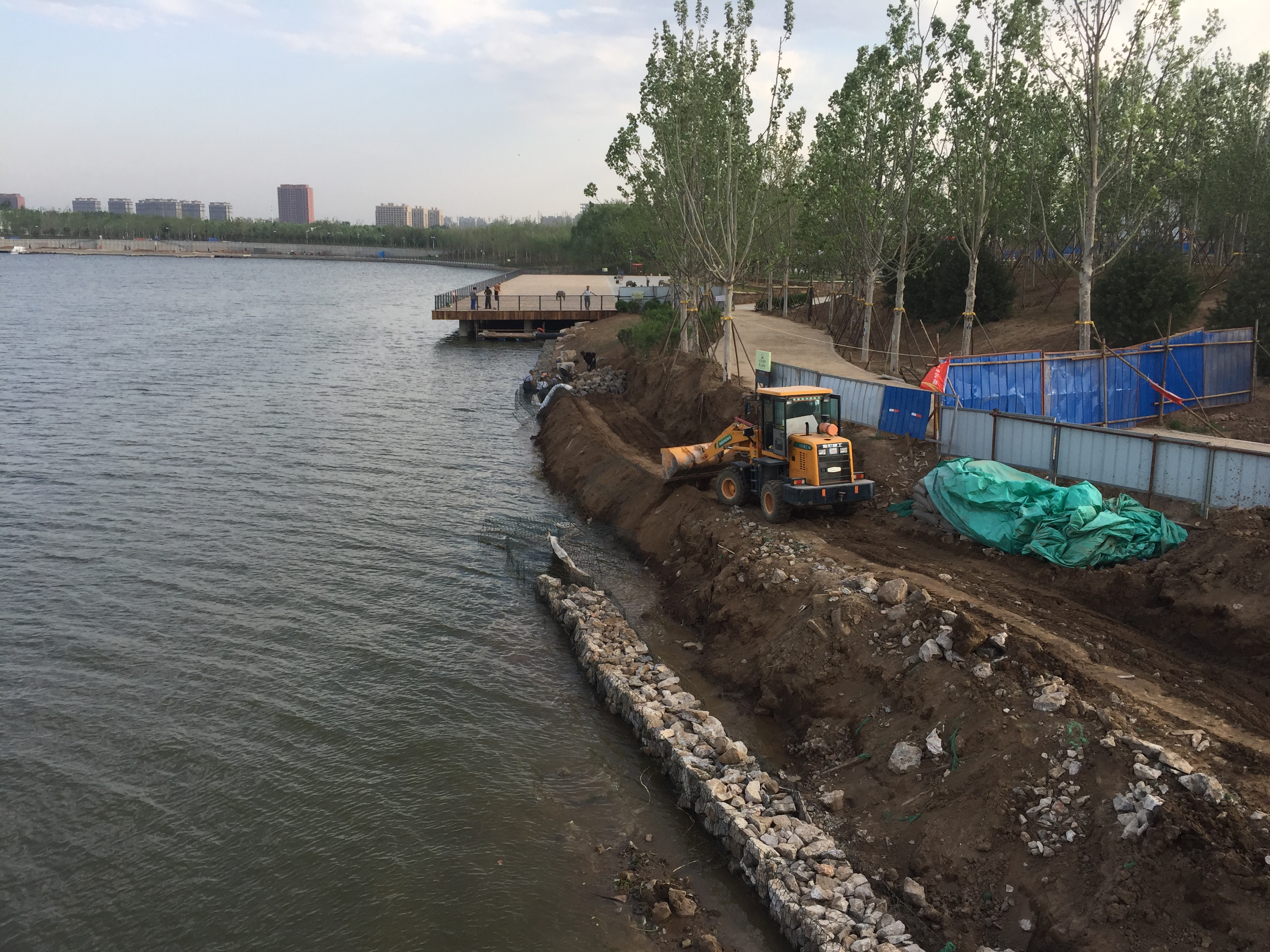 2017年4月29日,河岸進(jìn)行木樁防護(hù)。