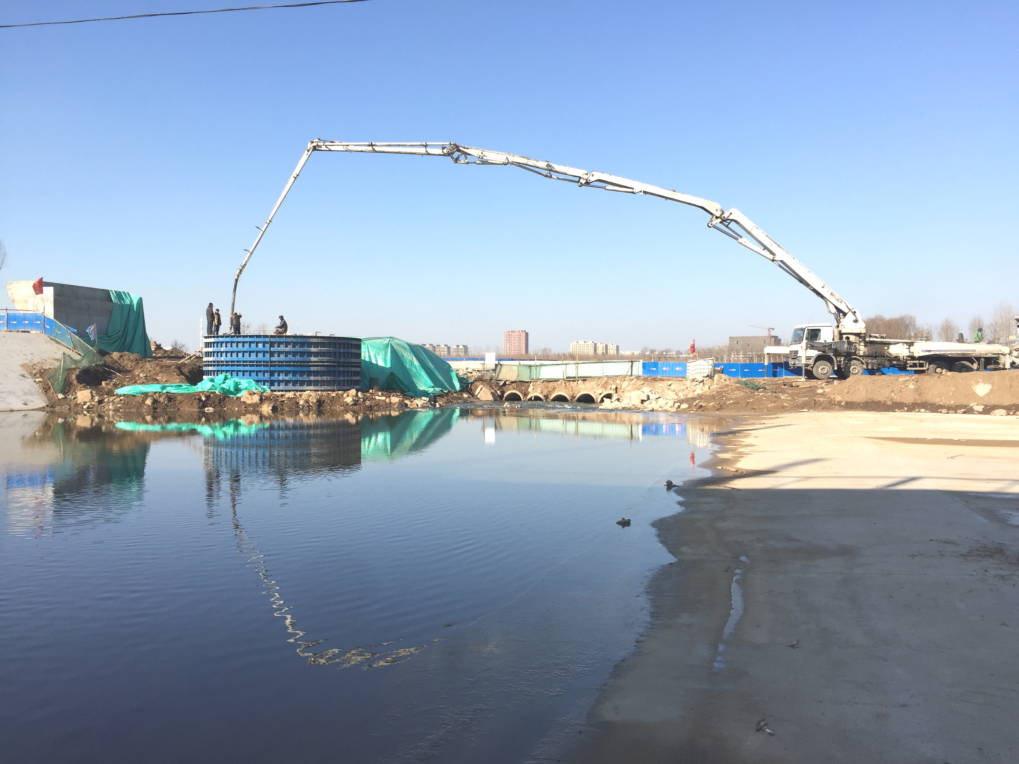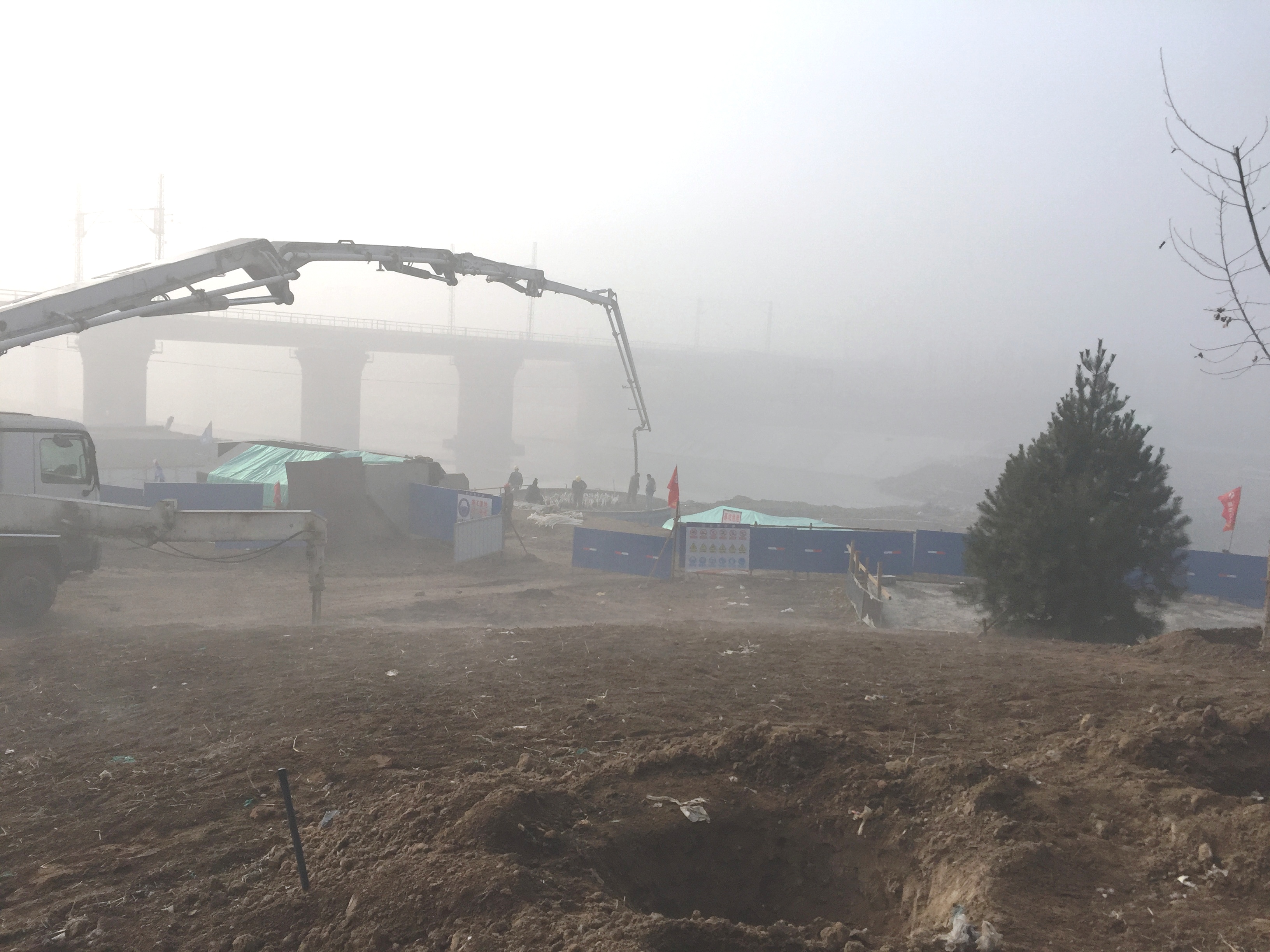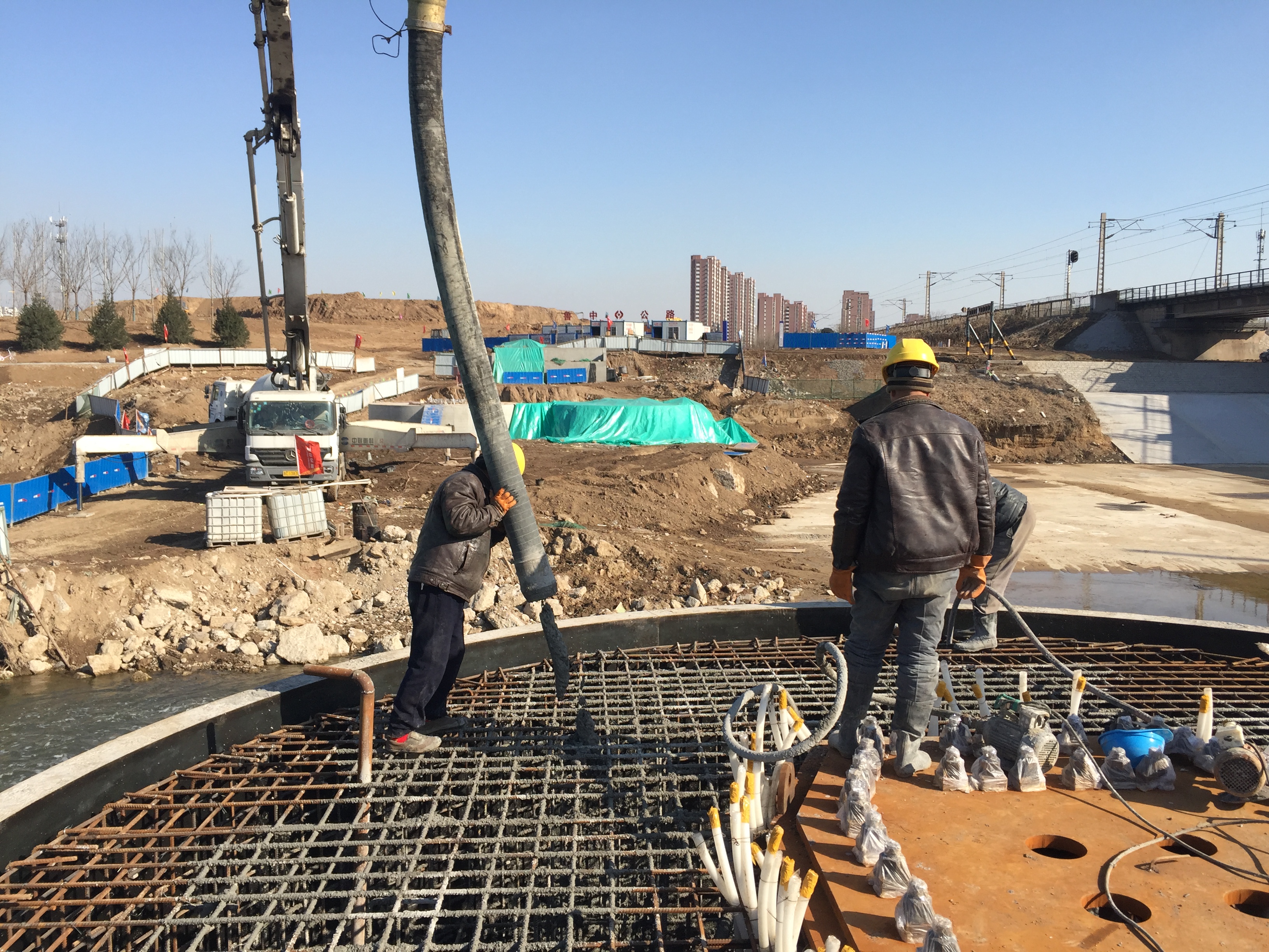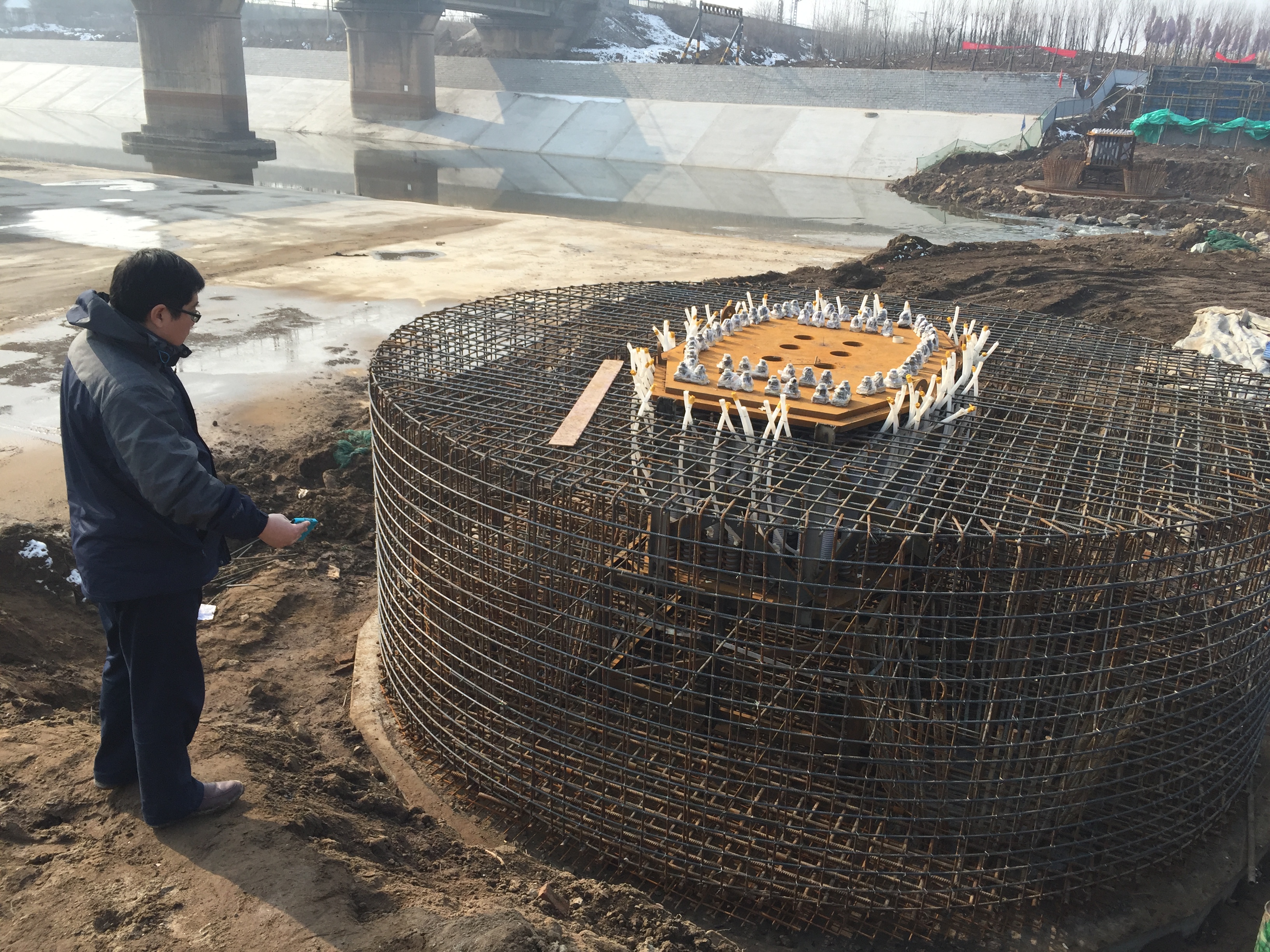 2017年1月14日,久違的藍(lán)天下,我們完成了最后一個圓承臺的澆筑。