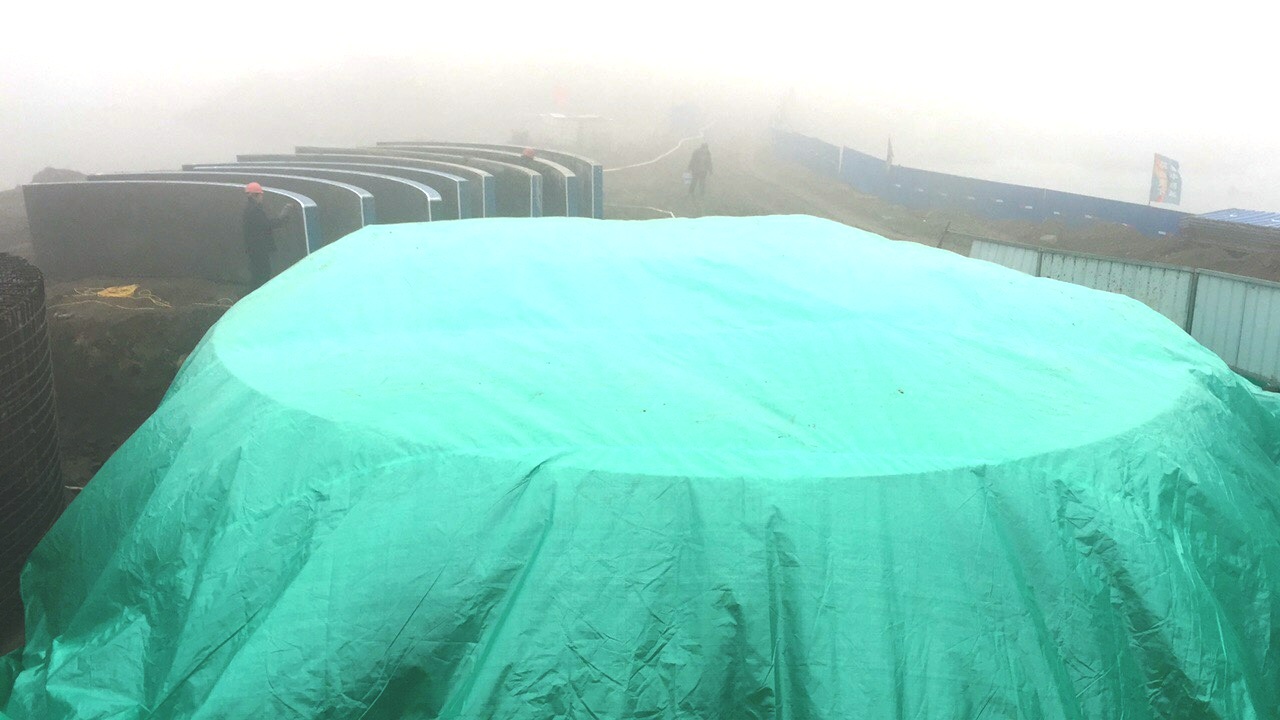 2017年1月2日,圓承臺混凝土養(yǎng)護(hù)。