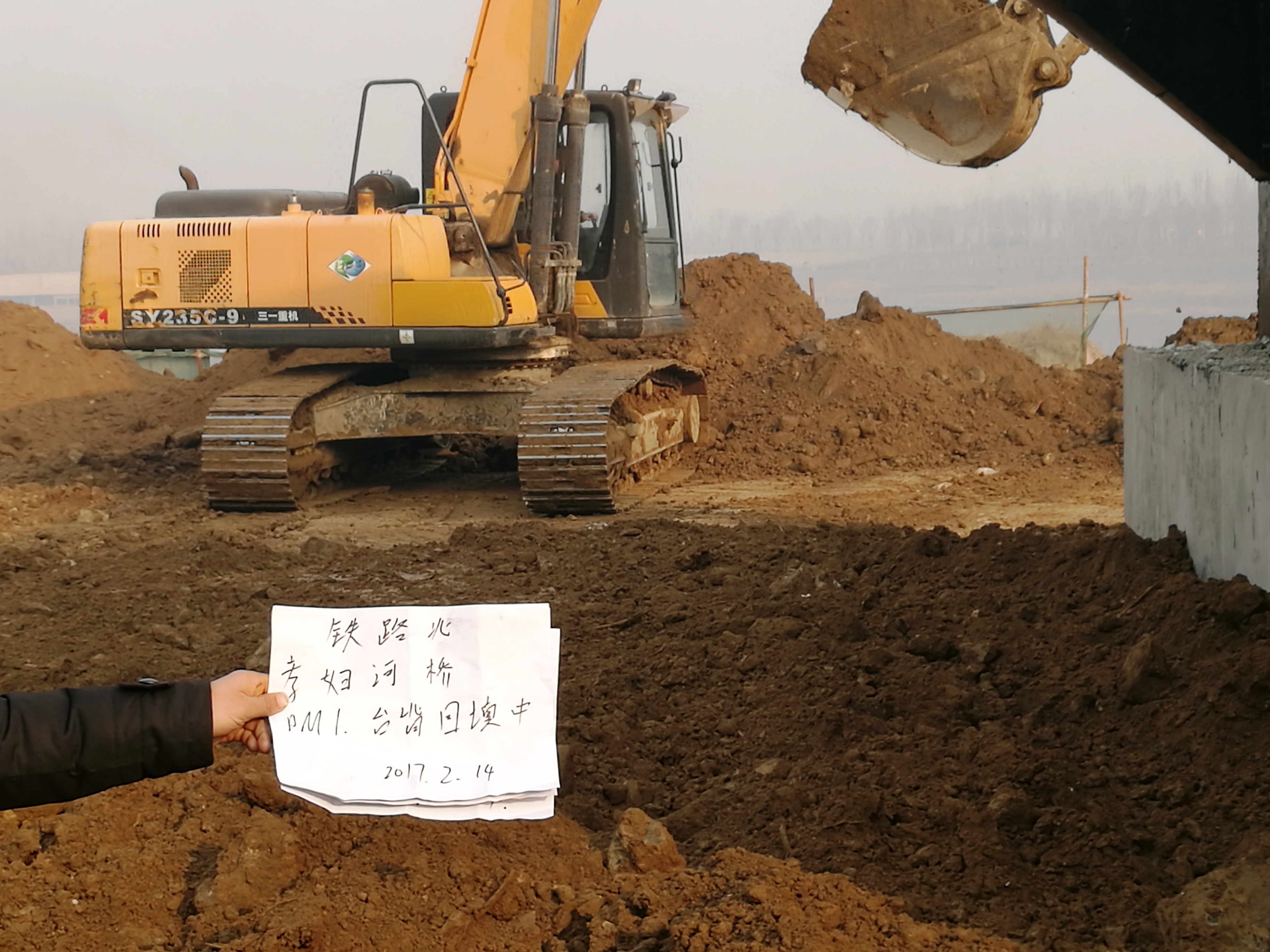 2017年2月14日,孝婦河懸索橋臺背回填。
