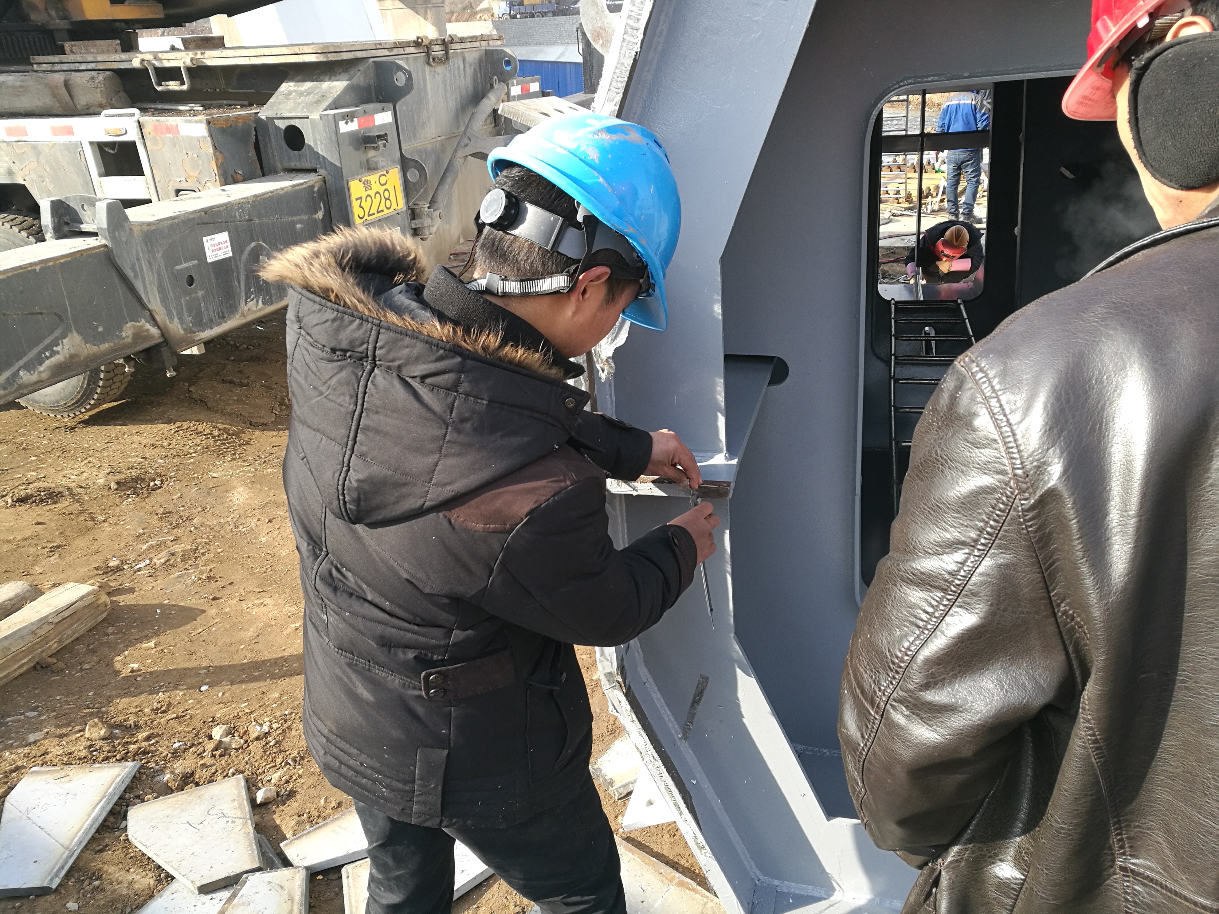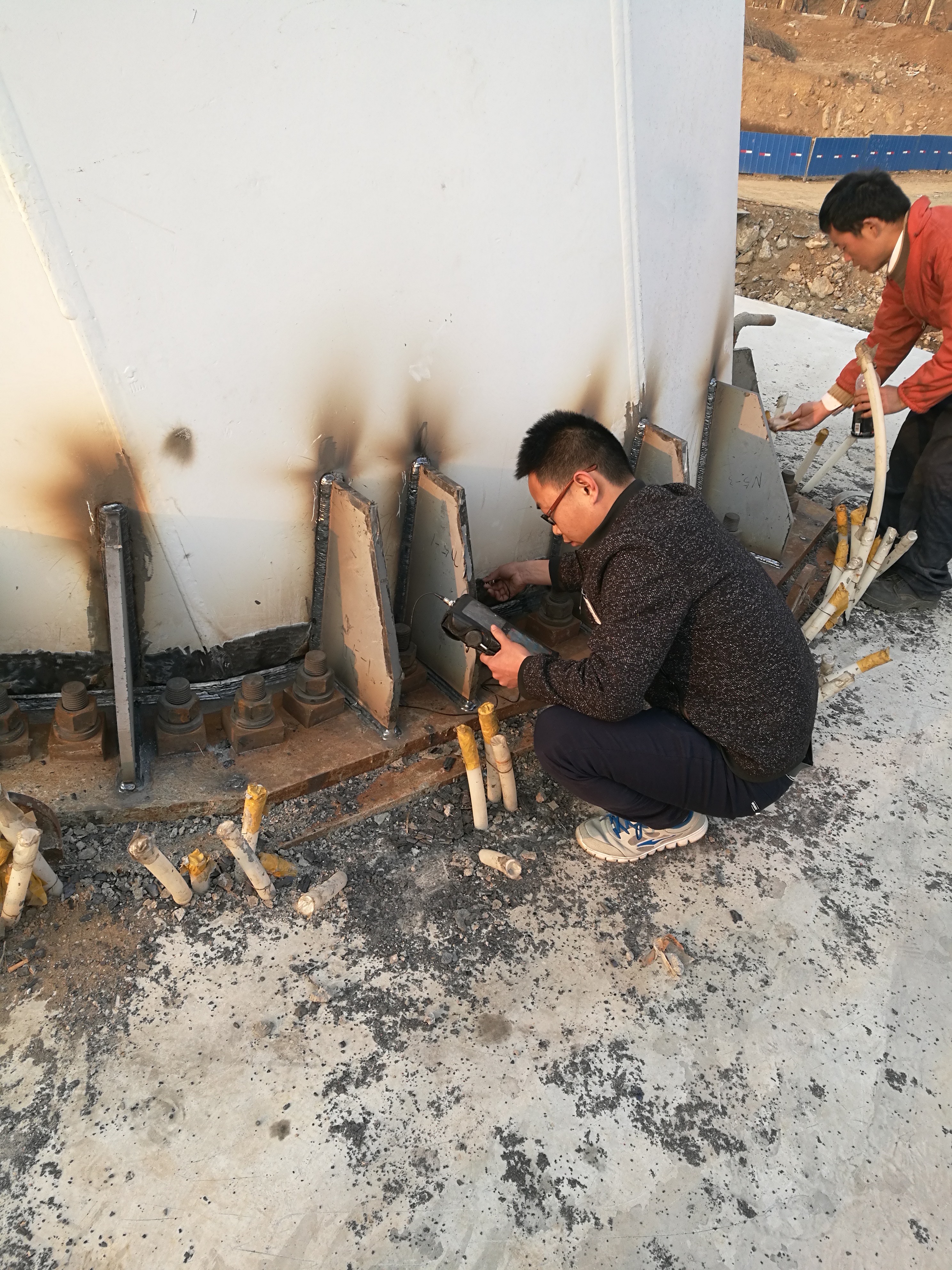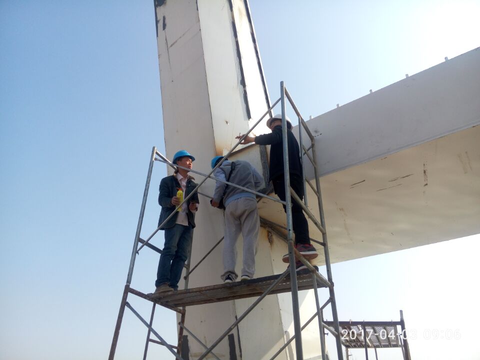 2017年2月27日,鋼主塔現(xiàn)場探傷檢測。