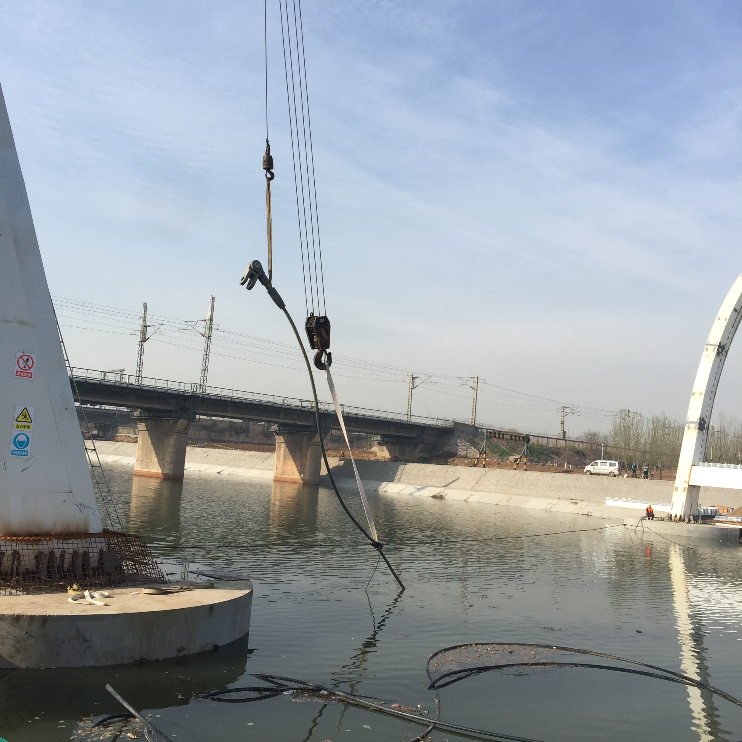 2017年4月10日,主纜起吊安裝。