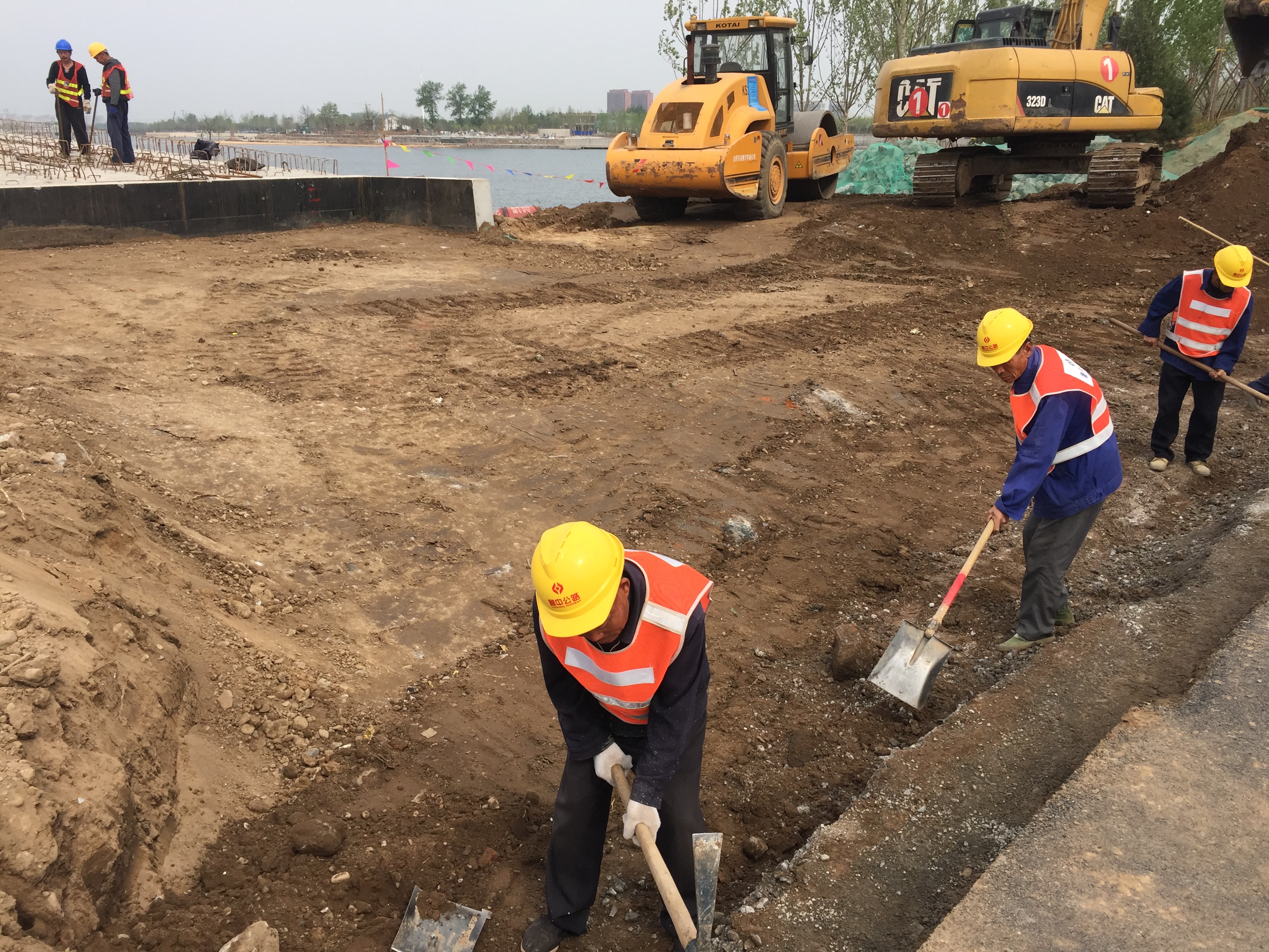 2017年4月24日,過渡段鋪筑墊層。