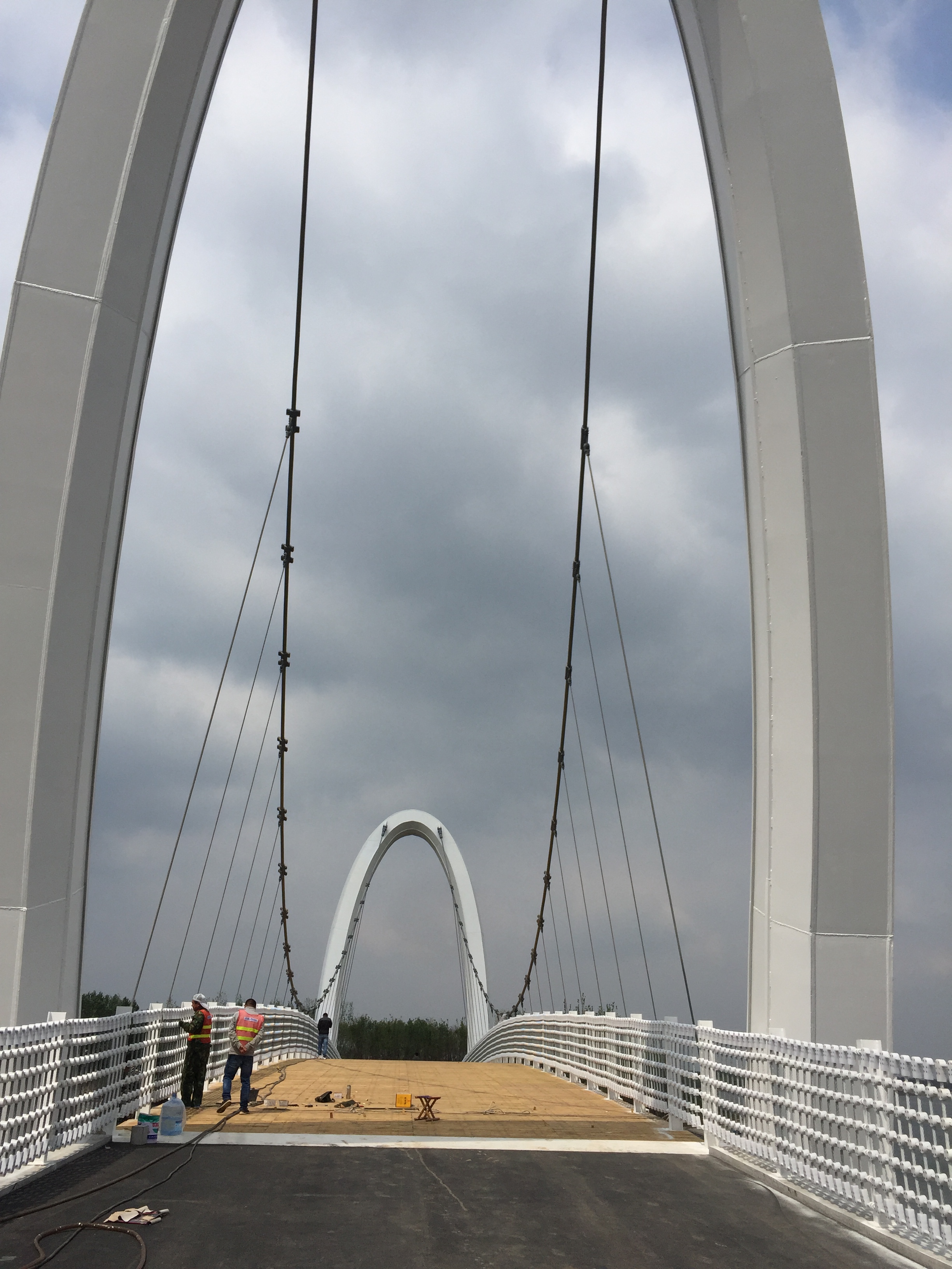 2017年5月2日,橋面防腐木鋪裝。