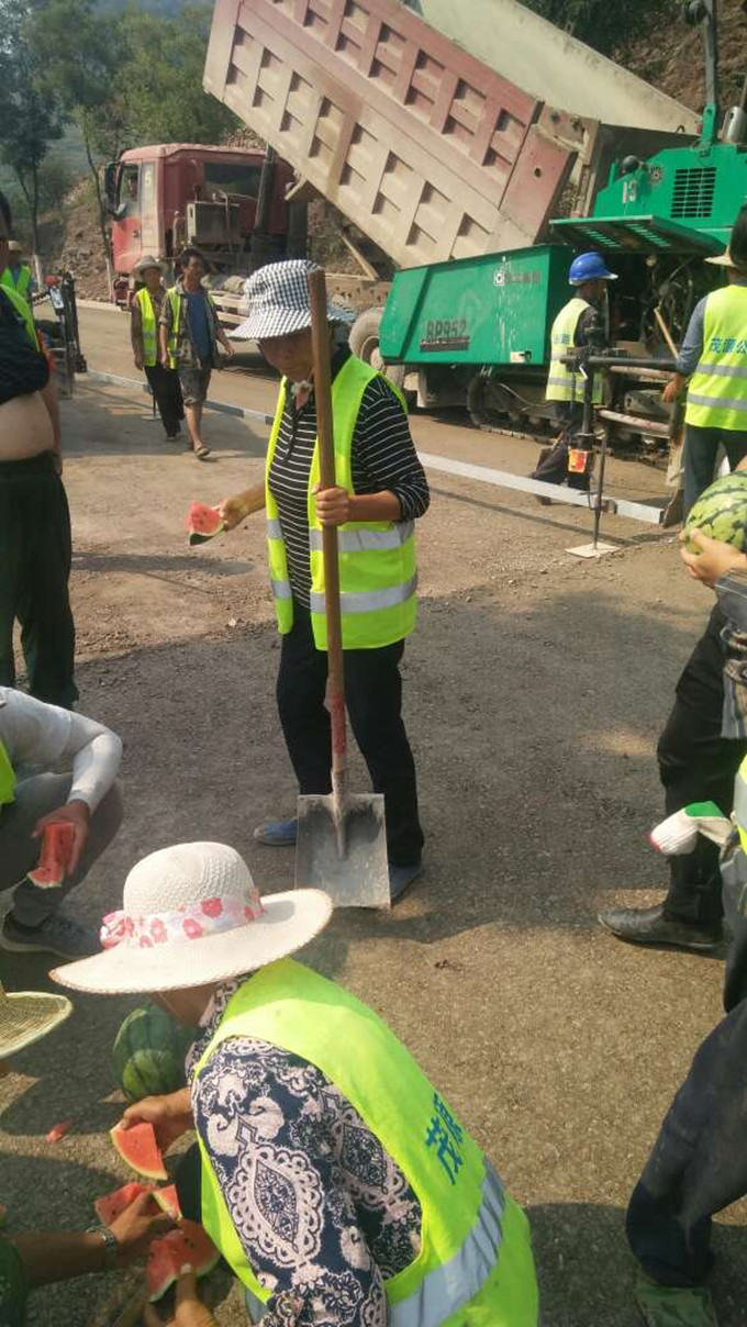 炙熱的太陽(yáng)烘烤著土地,工地上根本沒(méi)有遮陰的地方,全憑頭戴草帽抵擋強(qiáng)烈的陽(yáng)光;灑水車(chē)不斷的噴灑著水,很快變?yōu)樗徽舭l(fā);瀝青路面因高溫?cái)備佒丝局蠹业募∧w;機(jī)械作業(yè)噴發(fā)的熱浪加上直曬的太陽(yáng)把大家周?chē)臏囟人查g提升很多倍!但是再熱的天氣也阻擋不了公路一線員工的工作熱情,公路建設(shè)者為了趕工期、追進(jìn)度,仍然夜以繼日的戰(zhàn)斗在環(huán)境惡劣的施工一線。