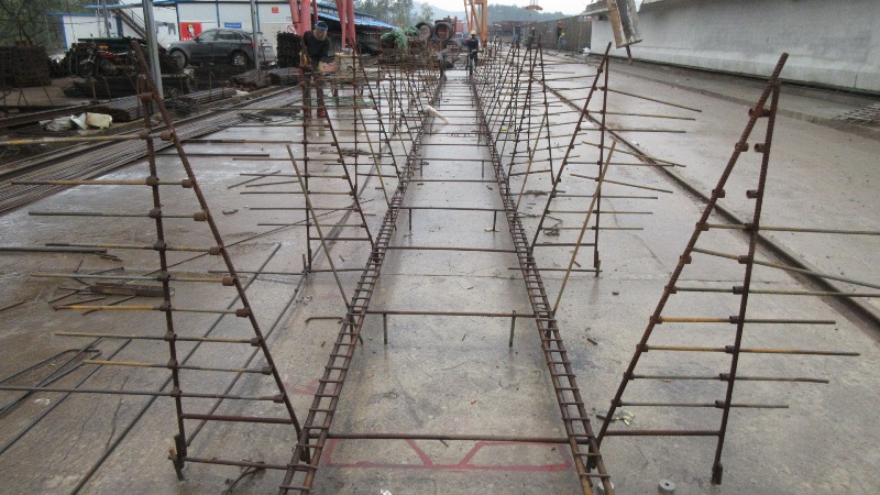 通過查閱圖紙,掌握整片箱梁鋼筋骨架的最外圍輪廓尺寸及每種類型鋼筋的型號、尺寸、間距、數量,做到心中有數。