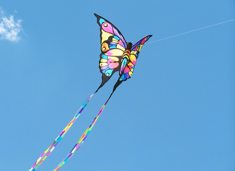現(xiàn)在彩鳶多是商品貨,少見自己動(dòng)手扎制的,憑心而論,現(xiàn)在的彩鳶有比小時(shí)候的風(fēng)箏大了很多,精致了很多,材料也發(fā)生了巨大的變化?,F(xiàn)在正是春風(fēng)吹遍大地,清明又是踏青之時(shí),登高踏青嬉風(fēng)放鳶,看彩鳶翻飛接天連地,飛上云端帶上美好的愿望,舒展著心情。
