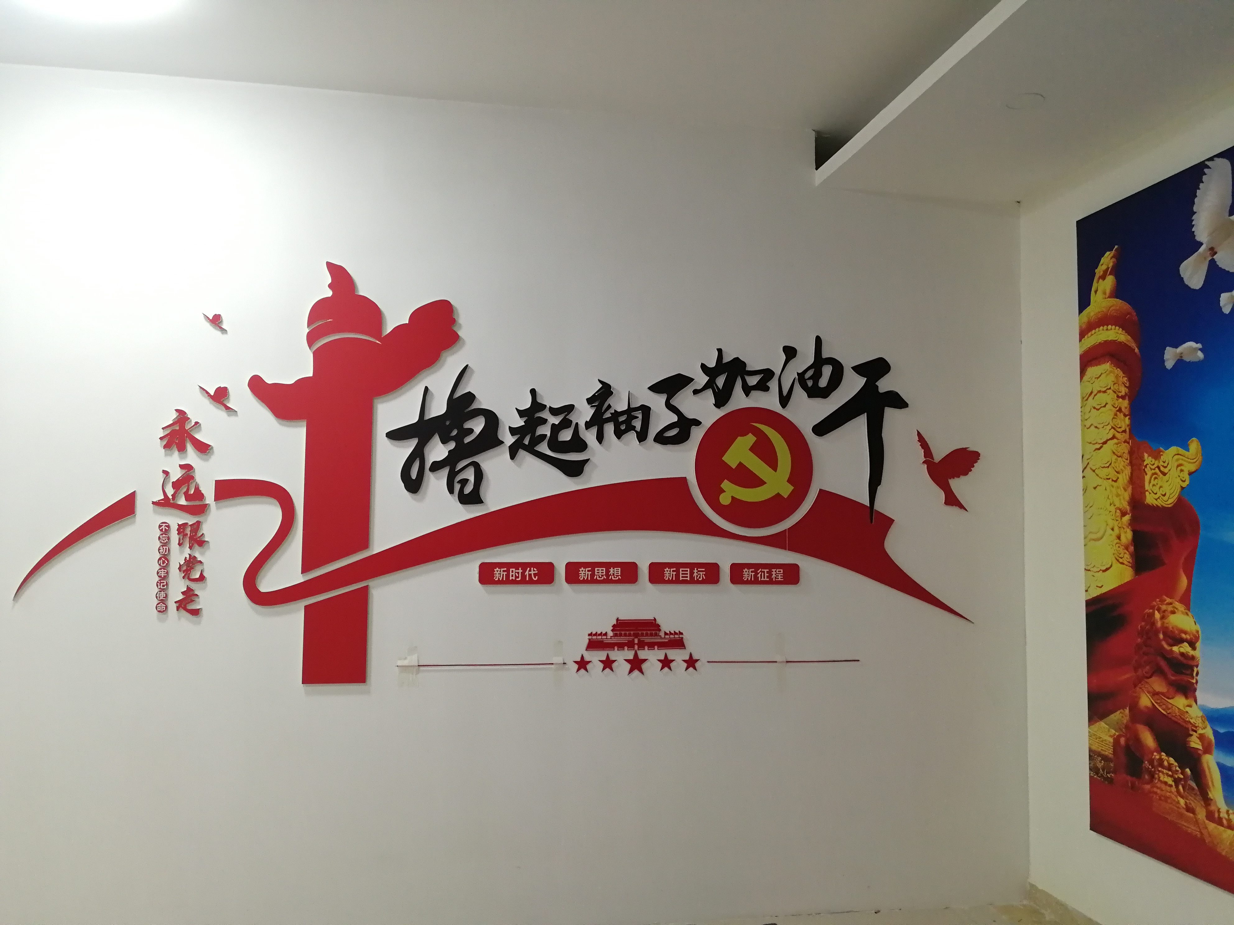 黨員活動室內(nèi)的大幅黨建宣傳圖。