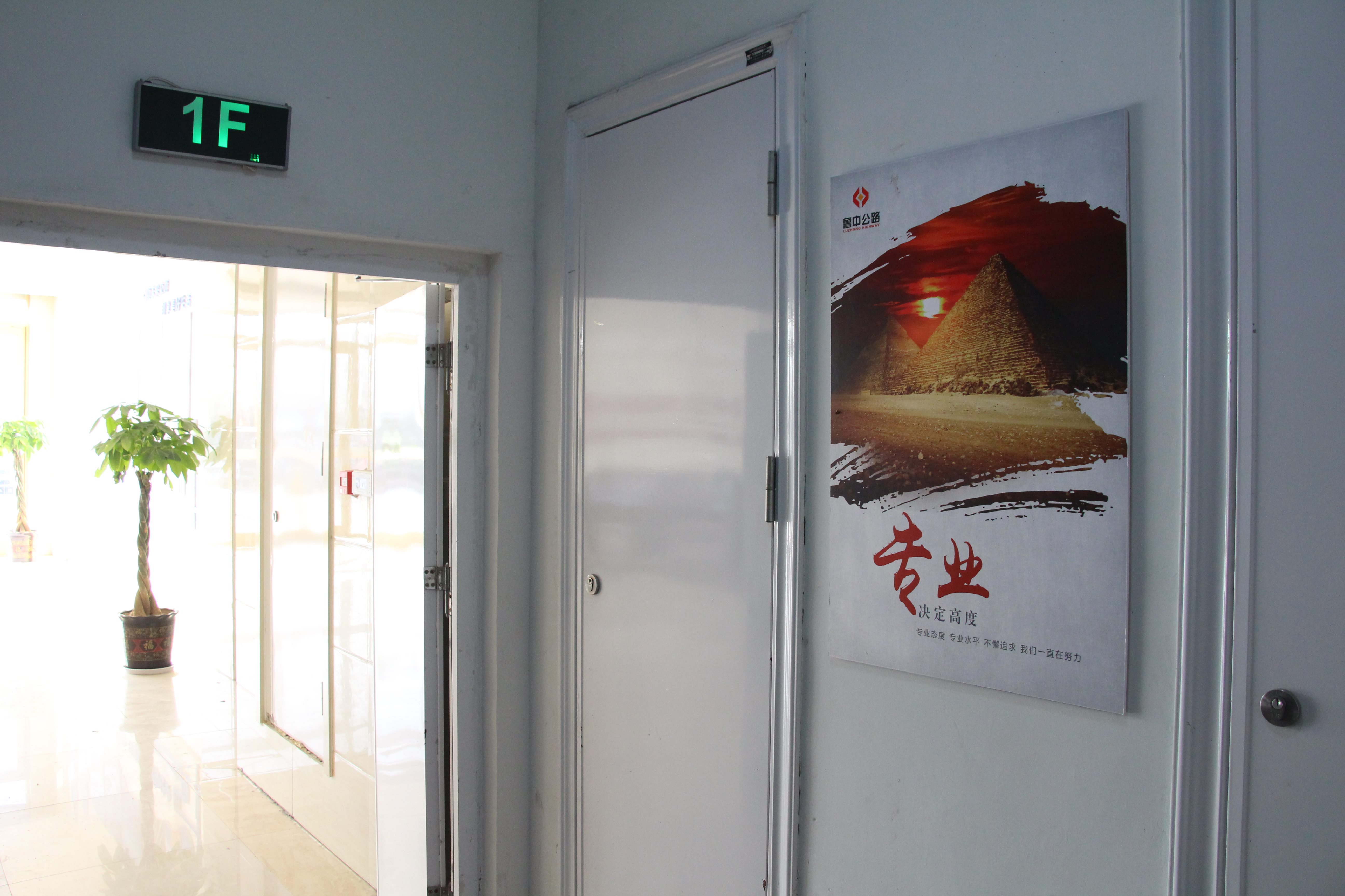 推開項(xiàng)目部大門,進(jìn)入一樓大廳內(nèi),首先映入眼簾的是魯中公路標(biāo)志及文化標(biāo)語。