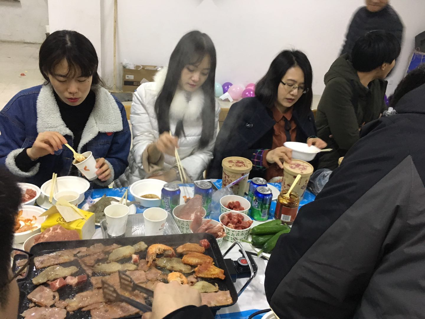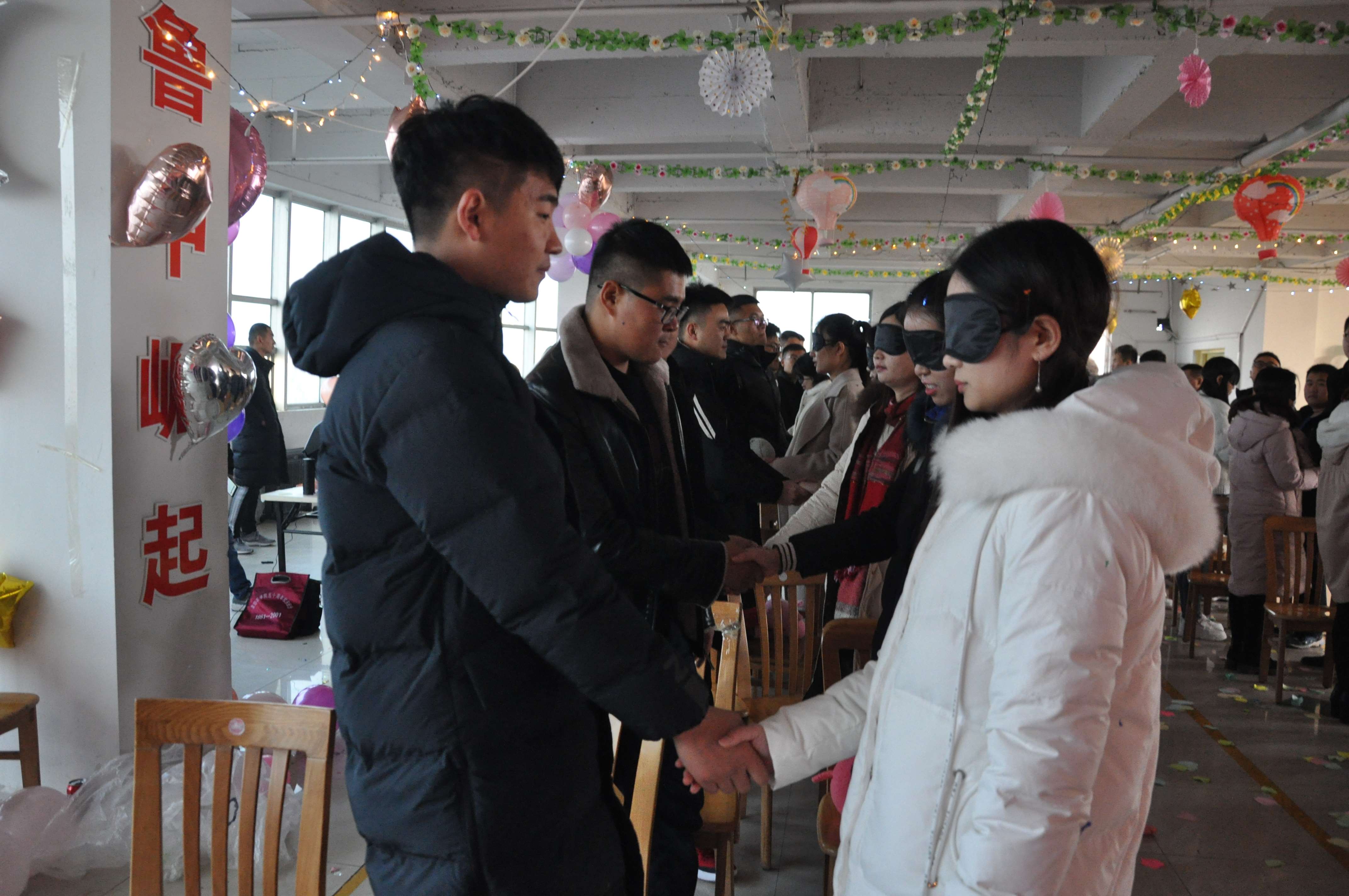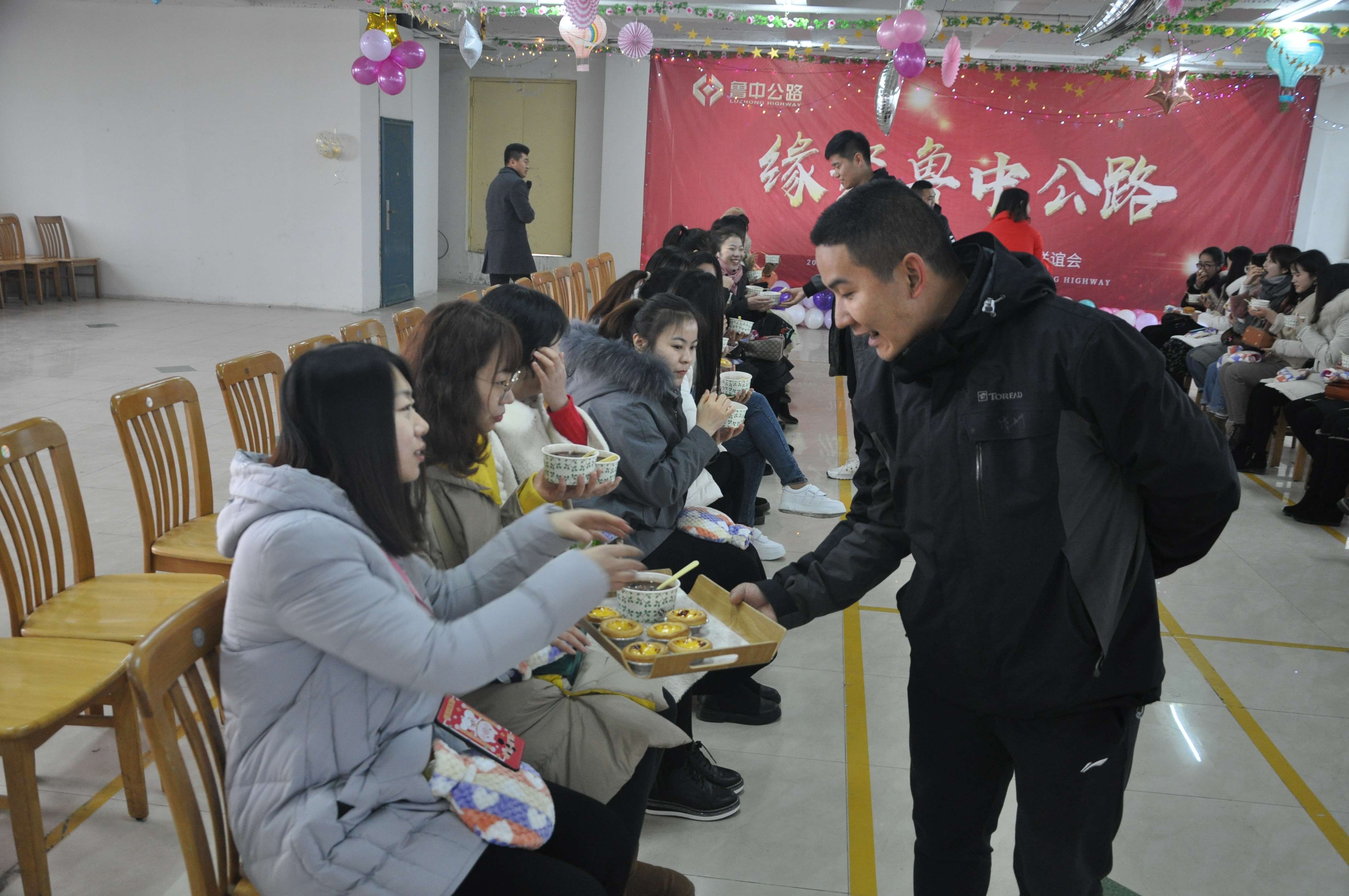 12:30分,原本有些陰霾的天氣,透出絲絲的陽(yáng)光,映在臉上,照進(jìn)心間,女孩子們乘坐的大巴車(chē)一抵達(dá),小伙子們立即迎上去貼心的為女孩子們送上暖手袋。引入會(huì)場(chǎng)后,趕緊殷勤的捧上香濃美味的“臘八粥”,爭(zhēng)搶著上前遞上甜蜜的各式糕點(diǎn)。女孩子紛紛被小伙子們逗得漲紅了臉,笑彎了眼,隨著氣氛的逐漸活躍,大家也彼此熟絡(luò)起來(lái)。
