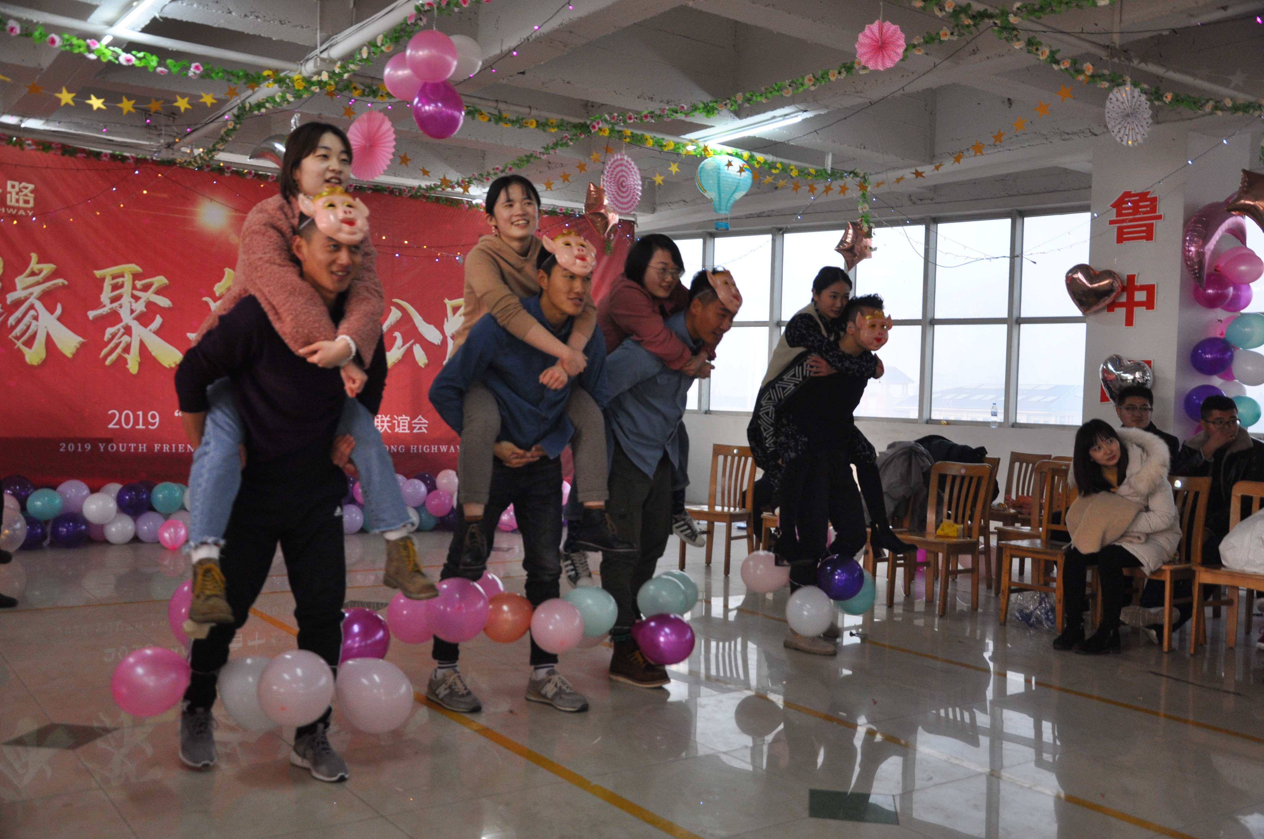 通過(guò)“認(rèn)識(shí)你”,展現(xiàn)出青年人團(tuán)結(jié)協(xié)作、擔(dān)當(dāng)果敢,和快速掌握技巧的大智慧。接下來(lái)則是為契合豬年諸事順利、心想事成,極力展現(xiàn)男孩子們個(gè)人魅力而設(shè)計(jì)的“八戒闖關(guān)”游戲。男生們紛紛帶上八戒面具,背著女孩子斬關(guān)奪隘,緊張火熱的游戲,引來(lái)大家喝彩、尖叫聲不斷。一個(gè)堅(jiān)毅而踏實(shí)的臂膀,不僅僅能壘砌通天下的路,更能為心中的她擎一片天,守護(hù)一生的幸福。