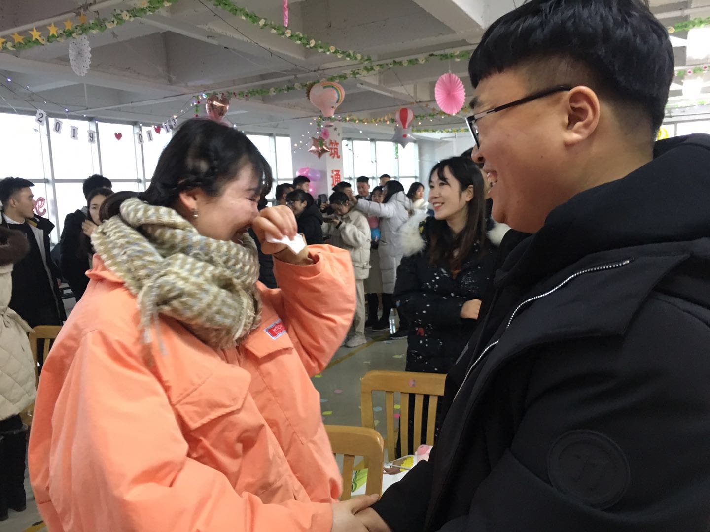 13:14分,隨著全場(chǎng)人員的倒計(jì)時(shí),成功開(kāi)啟了本屆聯(lián)誼會(huì)寓義著“一生一世”的愛(ài)情密碼,原本陌生的彼此,解開(kāi)心中的冰層,伴隨著熱情的音樂(lè),大家圍圈而舞,先前的拘謹(jǐn)與羞澀,在律動(dòng)中逐漸褪去,整個(gè)會(huì)場(chǎng)氣氛熱情高漲,一片歡聲笑語(yǔ)。