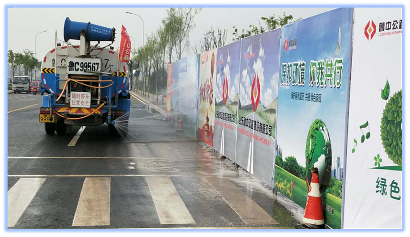 防揚(yáng)塵每天工地環(huán)保水車都會(huì)按時(shí)沖洗,保持工地形象干凈整潔