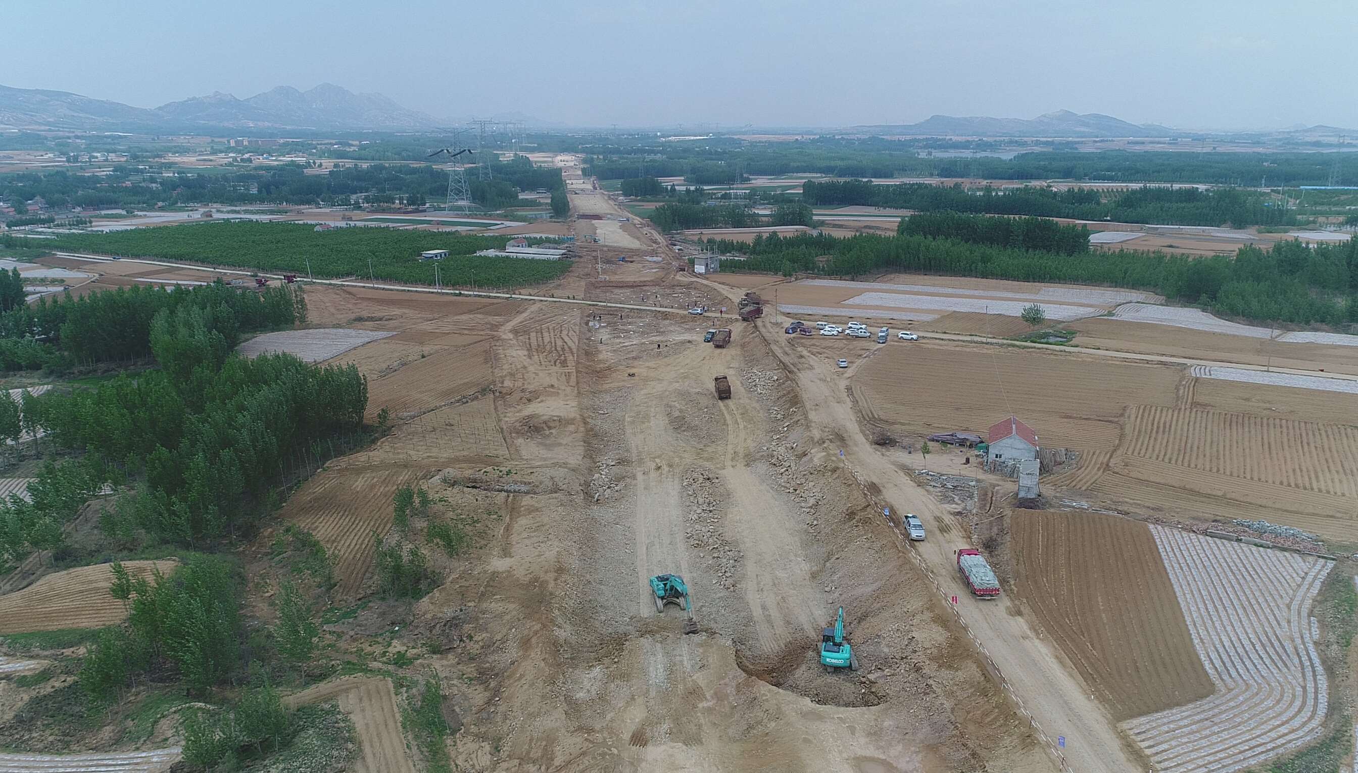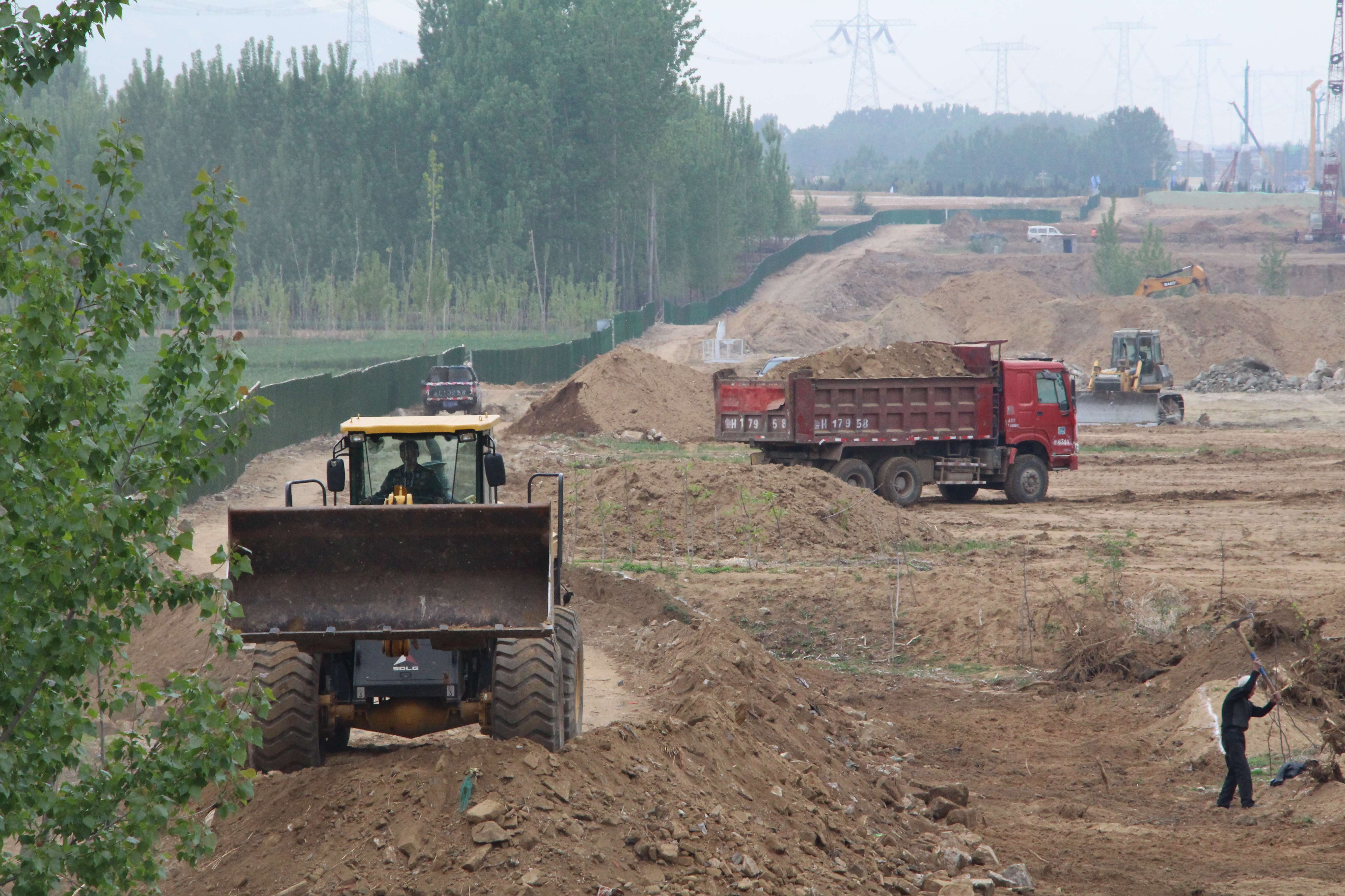 高鐵西側(cè)k57+500附近,現(xiàn)場負責(zé)人楊新剛正和施工隊一道進行便道施工。