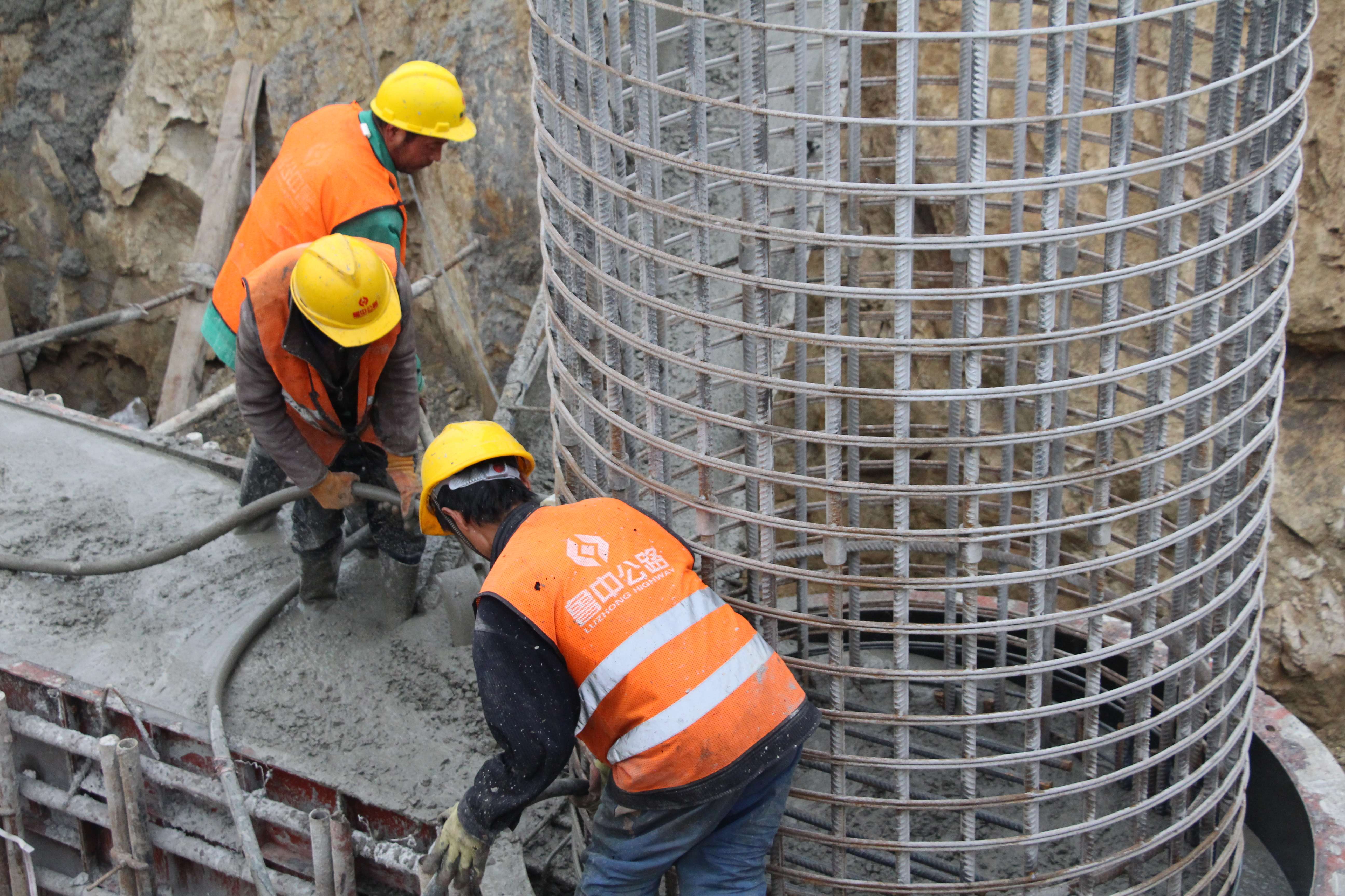 K35+759處,質(zhì)檢員褚海營正在指揮澆筑混凝土。