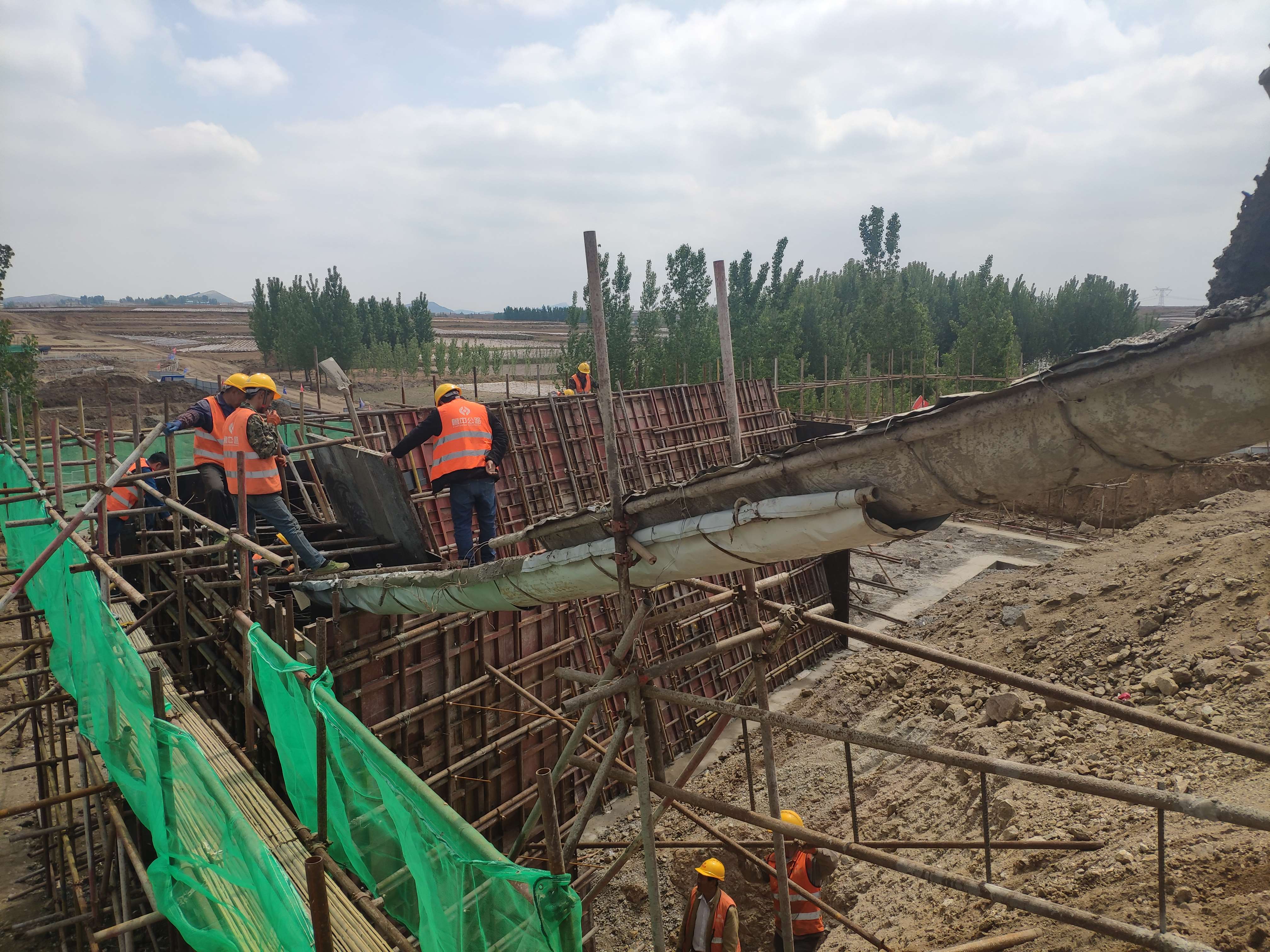K48+447.3分離立交,橋涵負責(zé)人張靖山正在現(xiàn)場指揮施工。