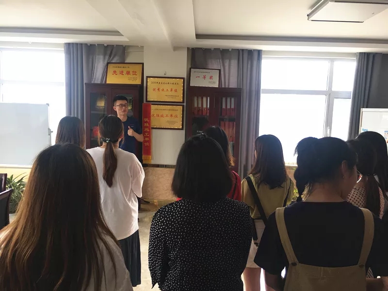 為了一解姑娘們舟車勞頓,小伙子們早早的準備了果盤、零食,大家在G2京滬高速項目部的會議室歡聚一堂,辦公室主任魏玉波向市兒童活動中心的老師們做了項目介紹及幽默風趣的歡迎儀式,使年輕人們記住彼此的姓名,消除了拘束。