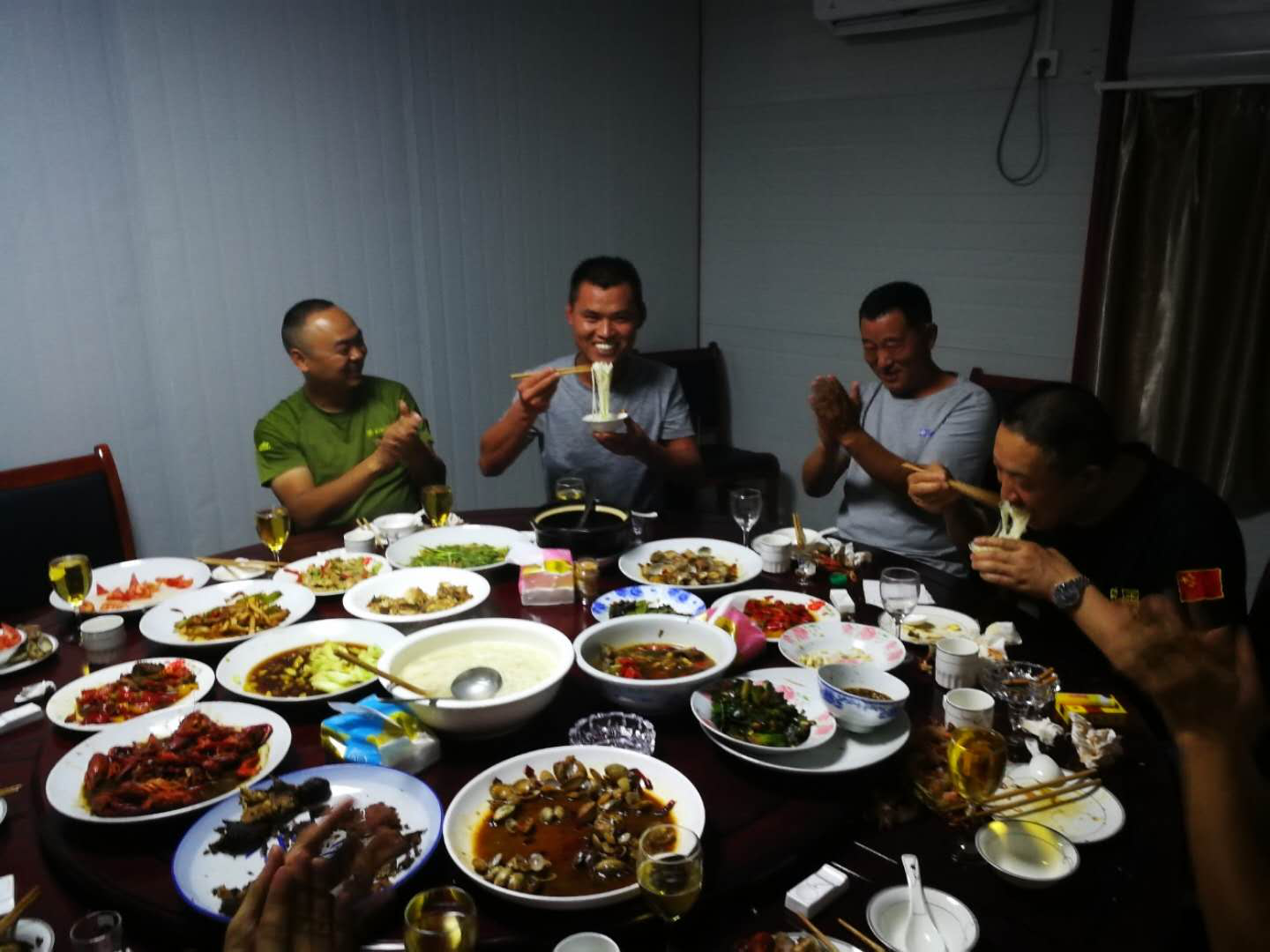 6月5日晚,西南工程分公司興贛北延項目為侯傳林、朱延茂補辦了生日聚餐,后勤科提前準(zhǔn)備好了一桌豐盛的晚餐,大家共同舉杯,為侯師傅與朱延茂送上生日祝福。52歲的侯師傅說:在工地這么多年了,從來沒有好好過生日,這是第一次公司給組織聚餐過生日,真是太開心了。朱延茂也說:能在工地跟大家一起過生日,非常的有意義,感覺到了公司對職工的親切的關(guān)懷??吹剿麄兒喜粩n嘴的笑臉,大家也都放下一天的疲憊,暫時放下工作的壓力,共同歡樂其中了。聚餐最后,后勤科長孫瑞文為兩位“壽星”煮了長壽面,祝愿侯師傅與朱延茂健康長壽。