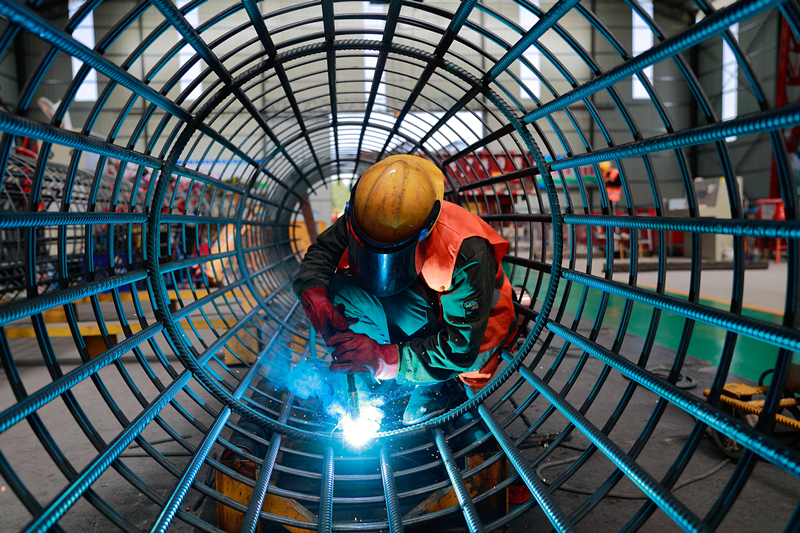 安全帽、防護(hù)面罩、防塵口罩、全套帆布質(zhì)地的工作服、長及手臂的皮質(zhì)手套——這些都是進(jìn)行焊接作業(yè)時的標(biāo)配,到了夏天,幾分鐘衣服就被汗水浸透,雖然高溫難耐,但鋼筋加工廠的工人們明白活不能耽誤,責(zé)任與堅(jiān)守是他們堅(jiān)定的承諾。