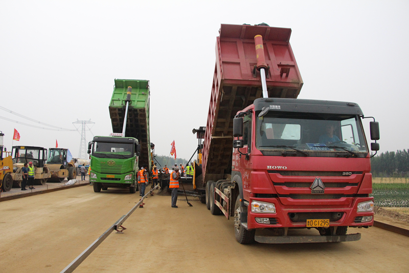 本次底基層試驗段的攤鋪過程中,業(yè)主、監(jiān)理單位有關(guān)負(fù)責(zé)人親赴現(xiàn)場,進(jìn)行觀摩指導(dǎo),下午,隨著最后一輛水穩(wěn)料車駛離現(xiàn)場,該試驗段攤鋪工作順利結(jié)束。