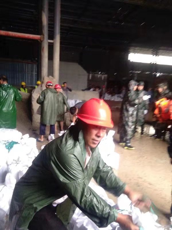 受“利奇馬”影響,8月10號(hào)到12號(hào)淄博市普降暴雨,孝婦河水位暴漲,袁家橋村段發(fā)生兩處50米、10米的決口,附近村莊被淹,情況危急。在項(xiàng)目自身受到臺(tái)風(fēng)與洪水影響的情況下,魯中公路經(jīng)開區(qū)分公司自8月11日17時(shí)開始,分批次投入搶險(xiǎn)人員34人,搶險(xiǎn)車輛7臺(tái),冒雨投入到抗洪救災(zāi)搶險(xiǎn)工作中。8月12日4時(shí),魯中公路柳園路孝婦河橋項(xiàng)目部又組織11人救援小組與一臺(tái)裝載機(jī)雨中再次奔赴搶險(xiǎn)救援現(xiàn)場。在省、市、開發(fā)區(qū)、及市交通運(yùn)輸局等領(lǐng)導(dǎo)的督導(dǎo)下,水利專家的指導(dǎo)下,魯中公路與500多名武警官兵、公安干警、消防戰(zhàn)士,及經(jīng)開區(qū)管委會(huì)、經(jīng)開區(qū)各施工單位,當(dāng)?shù)孛癖姷?000多人經(jīng)過兩天近50個(gè)小時(shí)的日夜奮戰(zhàn),8月13日下午16時(shí),袁家橋段缺口成功堵住。