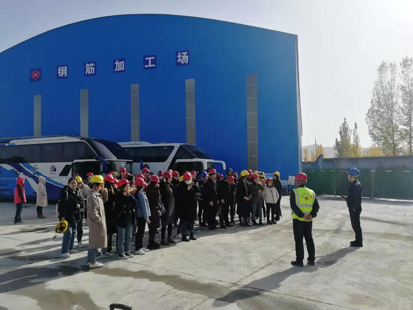 參觀結束,同學們依依不舍踏上歸程。臨行與預制場施工人員合影留念