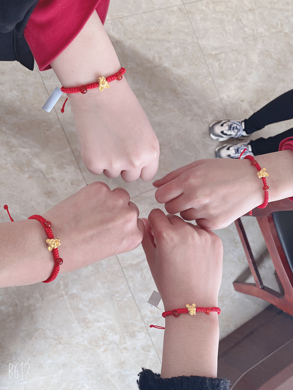 今年公司為女員工們準備的節(jié)日禮物是一串寓意著吉祥平安的足金鼠轉運珠手鏈,在這個特殊日子中,寄托了公司對每位女員工的祝福:“數(鼠)這些美麗的姑娘們最健康!最幸福!”