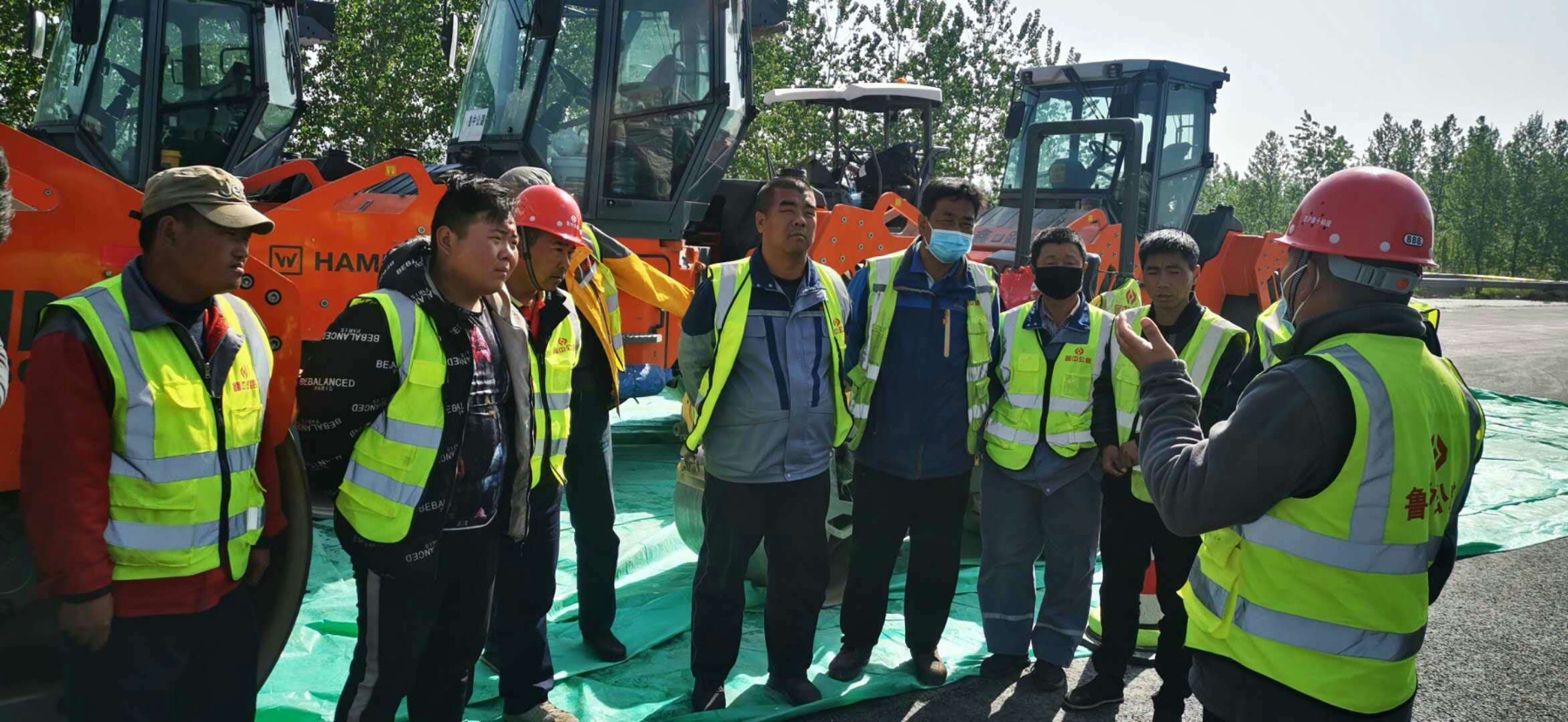 瀝青面層施工前,施工隊(duì)長(zhǎng)許超對(duì)工人做安全技術(shù)交底。