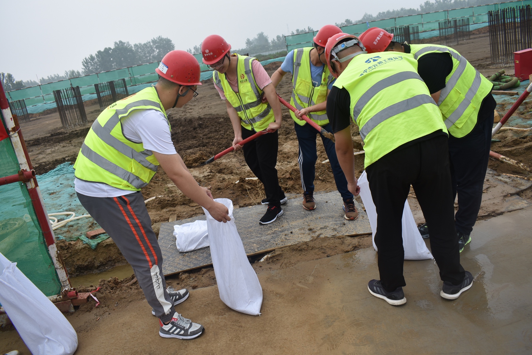 現(xiàn)場搶險組裝沙袋封堵排水口