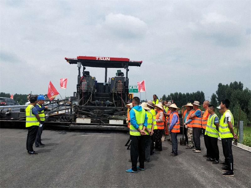 本次攤鋪的SMA-13瀝青上面層試驗段選取在K48+300-K48+600右幅,全場300米,單幅標準寬度為11.25m,設計厚度為4cm。此次施工采用1臺天順長城攤鋪機半幅全斷面一次攤鋪成型,4臺13T寶馬雙鋼輪壓路機碾壓,施工過程中嚴格按照質(zhì)量標準控制,使各道工序有序銜接進行。