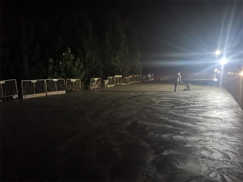 在橋面鋪裝施工過(guò)程中,新寧項(xiàng)目部精心組織、超前謀劃,從原材料的選用到鋪裝前橋面面板清理、鋼筋網(wǎng)片鋪設(shè)、混凝土澆筑平整等,每道工序嚴(yán)格把關(guān),相關(guān)技術(shù)人員全程指導(dǎo)、監(jiān)督、監(jiān)測(cè),對(duì)混凝土塌落度及橋面鋪裝層高程、厚度、橫坡度、平整度等各項(xiàng)技術(shù)指標(biāo)進(jìn)行了嚴(yán)格控制,從而保證橋面鋪裝質(zhì)量達(dá)到優(yōu)良標(biāo)準(zhǔn)。
