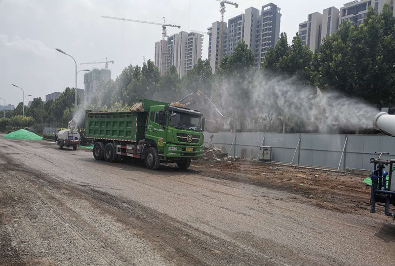 土方開(kāi)挖采用濕法作業(yè),使用4臺(tái)12立方米水車(chē),6臺(tái)三輪水車(chē)進(jìn)行路面降塵工作