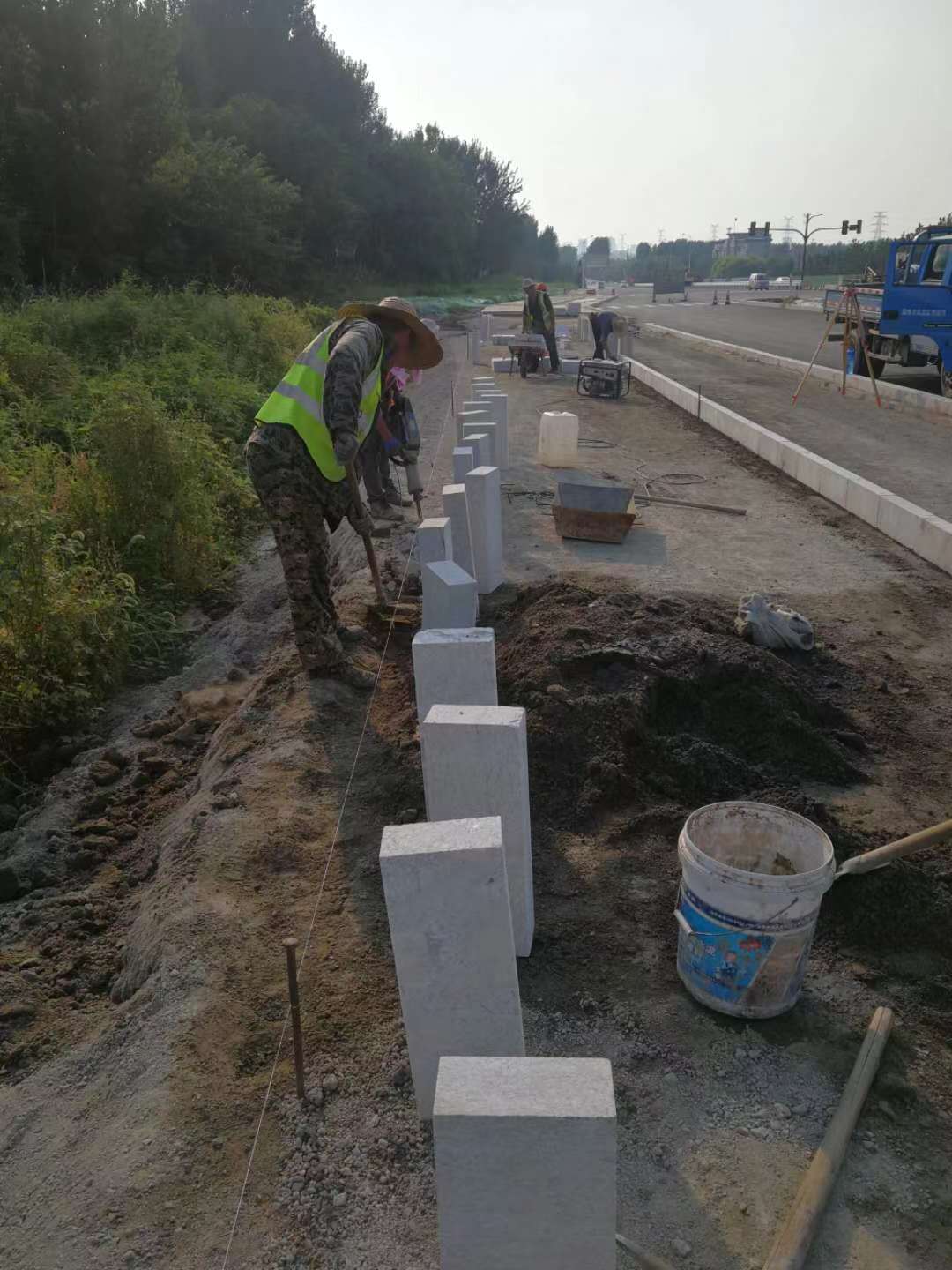 在進(jìn)入8月炎熱酷暑的炎炎烈日下,在雙魯立交的施工現(xiàn)場,全體施工人員,頭頂烈日,緊張而有序的投入到雙魯立交的收尾工作中,汗水浸濕了衣衫,黝黑的皮膚站在烈日下泛著一絲紅光,這是我們工程人特有的膚色。面對雙魯剩余工程點多面光、工程零散不集中,為確保收尾工作有序完成,項目部合理安排施工計劃。與魯山大道北延工程協(xié)調(diào)施工,見縫插針的施工。充分利用時間間隙合作組織施工。剩余水穩(wěn)施工工作面比較零散,設(shè)備調(diào)轉(zhuǎn)比較頻繁,利用調(diào)轉(zhuǎn)設(shè)備時間拌和水泥穩(wěn)定風(fēng)化砂施工慢性一體,水穩(wěn)停機(jī)后利用晚間時間加班拌和砼,充分利用間歇時間組織施工。為了確保魯山大道北延瀝青面層攤鋪合理調(diào)配施工隊伍進(jìn)行魯山大道北延附屬施工。進(jìn)入8月大雨、小雨不斷,而施工人員不畏風(fēng)雨穿著雨衣繼續(xù)施工,爭分奪秒與時間賽跑、與天氣搶時間搶工期。