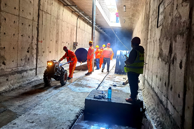 管廊內(nèi)外設(shè)專人調(diào)度指揮運(yùn)輸管道