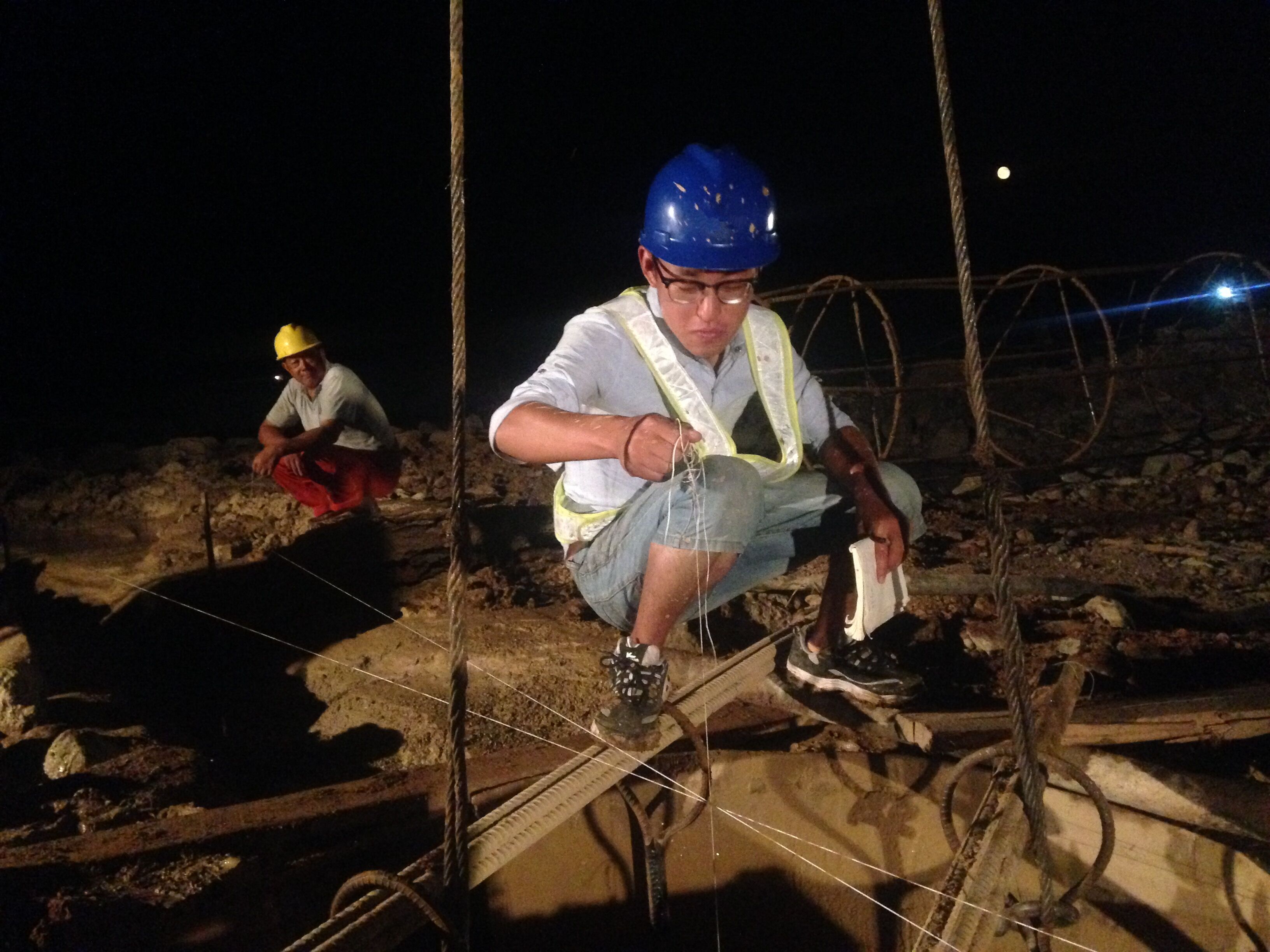 王立超正在進(jìn)行混凝土澆筑的觀測(cè)工作