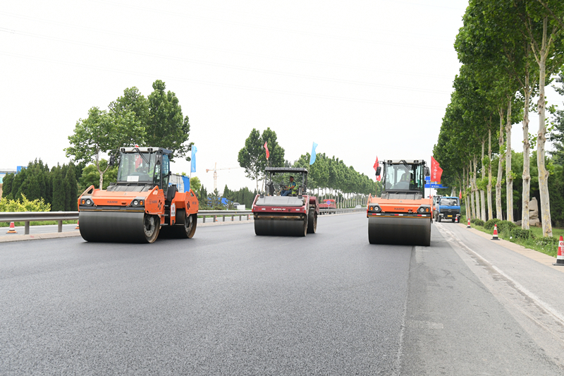 據了解,項目沿線大小路口近30處,交通形式復雜,車流量大,特別是博山城區(qū)段,車多路窄,易造成交通擁堵。工期緊、體量大、任務重,如何滿電量加速?