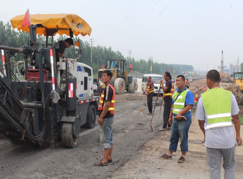 路總是從無到有,每天睜眼一看又有了新變化。路基團(tuán)隊(duì)在道路初建之時(shí),從沒白沒黑的清表、挖填、整平、攪拌、碾壓灑掃。待到石灰土層層驗(yàn)收后就又匆匆奔向新的起點(diǎn)。這中間的愁、苦、辛、勞仿佛是在彈指一揮間而已。宋希偉帶領(lǐng)著郭碩、魏濤、趙洪岳、于景民、張曉文這些施工員每天轉(zhuǎn)戰(zhàn)在挖掘機(jī)、銑刨機(jī)、推土機(jī)、沖擊碾壓、液壓夯、壓路機(jī)、平地機(jī)、路拌機(jī)、運(yùn)輸車和施工隊(duì)之間,抱著本子測(cè)量、打點(diǎn)、放線、統(tǒng)計(jì)、開報(bào)表.....每天從早5點(diǎn)到后半夜連軸轉(zhuǎn),辦公室輕易見不到人,電話一打往往是正在通話中,有事找他們最好的辦法就是到工地到現(xiàn)場,一準(zhǔn)能找到一臉嚴(yán)肅的宋希偉,咧著嘴似笑似不笑的郭碩,一本正經(jīng)正在指揮施工的趙洪岳,整天嘻嘻哈哈的于景民和看著與年紀(jì)不符的張曉文,張嘴就是:“黃主任有水嗎,我水都喝光了。”再就是:“有事嗎?沒事我忙去啦。”