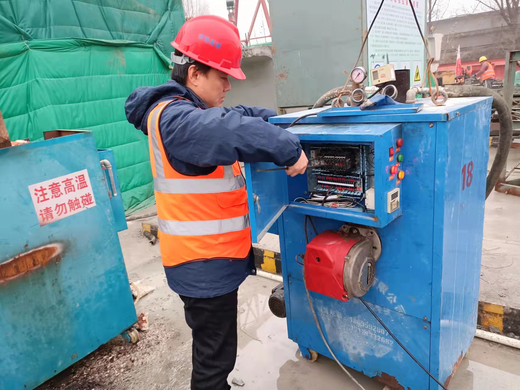 在高軍、徐立貞、齊振國(guó)帶隊(duì)下,對(duì)全場(chǎng)龍門吊、配電箱、職工宿舍用電、鋼筋加工設(shè)備、砼拌合站進(jìn)行了統(tǒng)一檢修。
