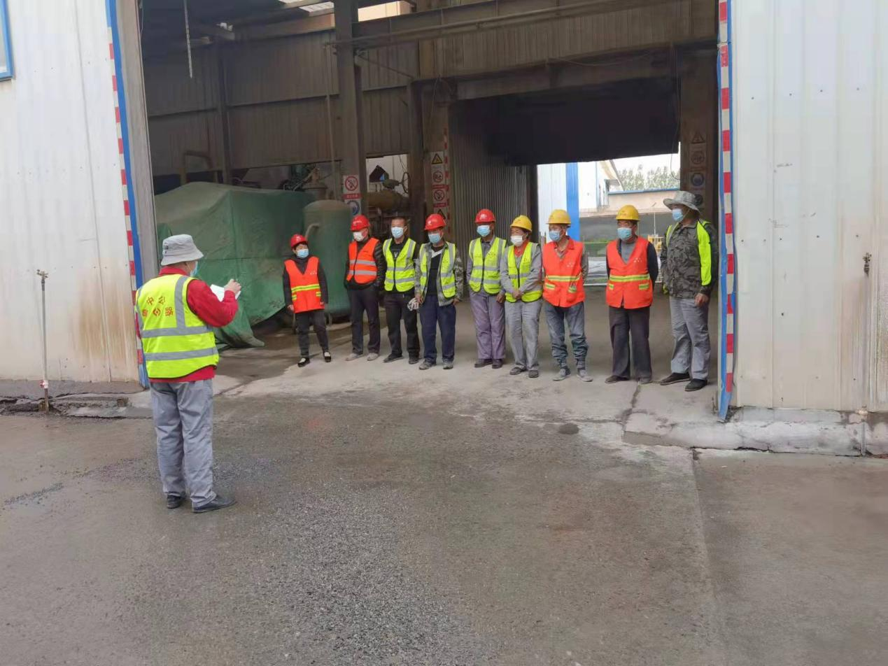 瀝青站班前會(huì),進(jìn)行安全、技術(shù)交底