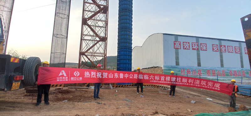 2022年4月21日11時(shí)14分,隨著吊車提升料斗,第一斗混凝土澆入墩柱柱模中,臨淄至臨沂高速公路第六標(biāo)段項(xiàng)目西里互通A匝道橋首根墩柱開始澆筑。經(jīng)過現(xiàn)場(chǎng)施工人員近6根小時(shí)的連續(xù)作業(yè),16時(shí)53分,首墩順利澆筑完成,標(biāo)志著臨臨六標(biāo)項(xiàng)目墩柱施工正式拉開序幕。
