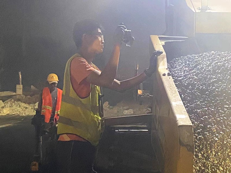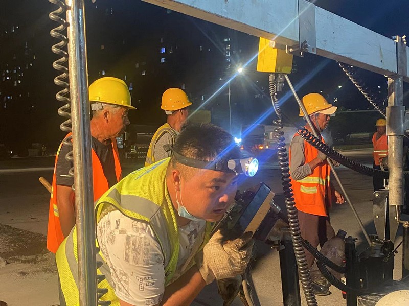 5月28日凌晨4點,昌國路西八路路口施工現(xiàn)場依舊忙碌,現(xiàn)場20多名工作人員已連續(xù)作戰(zhàn)24小時,連日的高溫加上高達170℃的攤鋪瀝青,讓整個施工現(xiàn)場籠罩在氤氳中。料車傾倒下新鮮的熱瀝青,攤鋪機隨后沉穩(wěn)的梳理著,幾名施工人員有指揮設備的有現(xiàn)場安全防護的,有拿鋼尺測量厚度的,有用鐵鍬把不均勻的地方填補均勻的,壓路機輪番碾壓,遠遠望去,如海市蜃樓般的虛幻。昌國路西八路路口是淄博最繁忙的幾條道路之一,白天車流量太大,不能封道作業(yè),第二天又是周末假期,所以采用“全時全域飽和施工”,整個作業(yè)面,人員裝備都是要滿負荷的。他們不寐不休,從27日早4:00至28日凌晨6:00,吃喝都在工地,“鐵人”般的工作作風被監(jiān)理、業(yè)主紛紛點贊。收工時,于景民、任慶波、黃保同等多名員工才發(fā)現(xiàn)自己的腳上已滿是瀝青燙起的水泡,正常走路都是鉆心的疼,旁人都不忍心多看幾眼,他們卻還在彼此開著玩笑,“為什么干活時不疼,難道干活時有神甲護身?”玩笑的背后是奉獻,“神甲”的背后是執(zhí)念,皮實的背后是強大的執(zhí)行力和對魯中公路強烈的歸屬感。