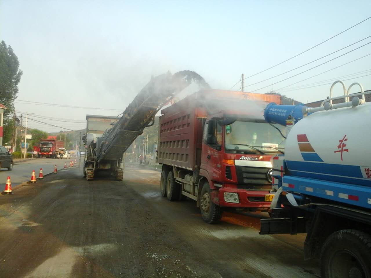在銑刨過程中,我們進(jìn)行了水炮灑水降塵。