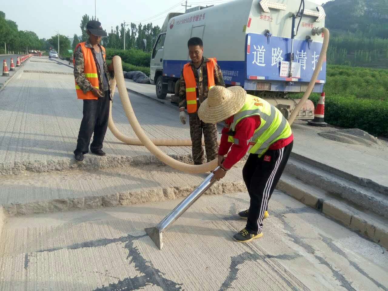 真空吸塵車細(xì)致清理銑刨面粉塵
